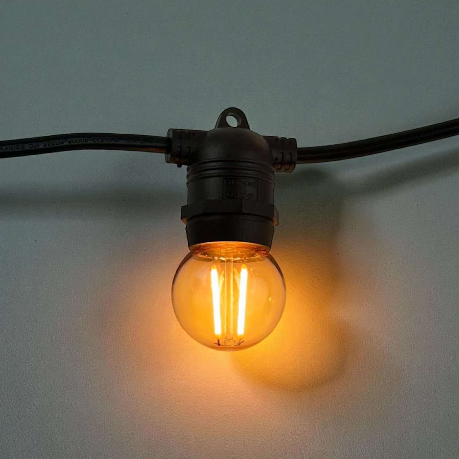 З лампою Edisons G45 ви можете не турбуватися про безпеку. Міцна пластикова колба не розіб'ється, а низьке енергоспоживання – це економічно та безпечно. Ідеально підходить для вуличних гірлянд, декоративного освітлення та навіть гірлянди у дитячій кімнаті.
