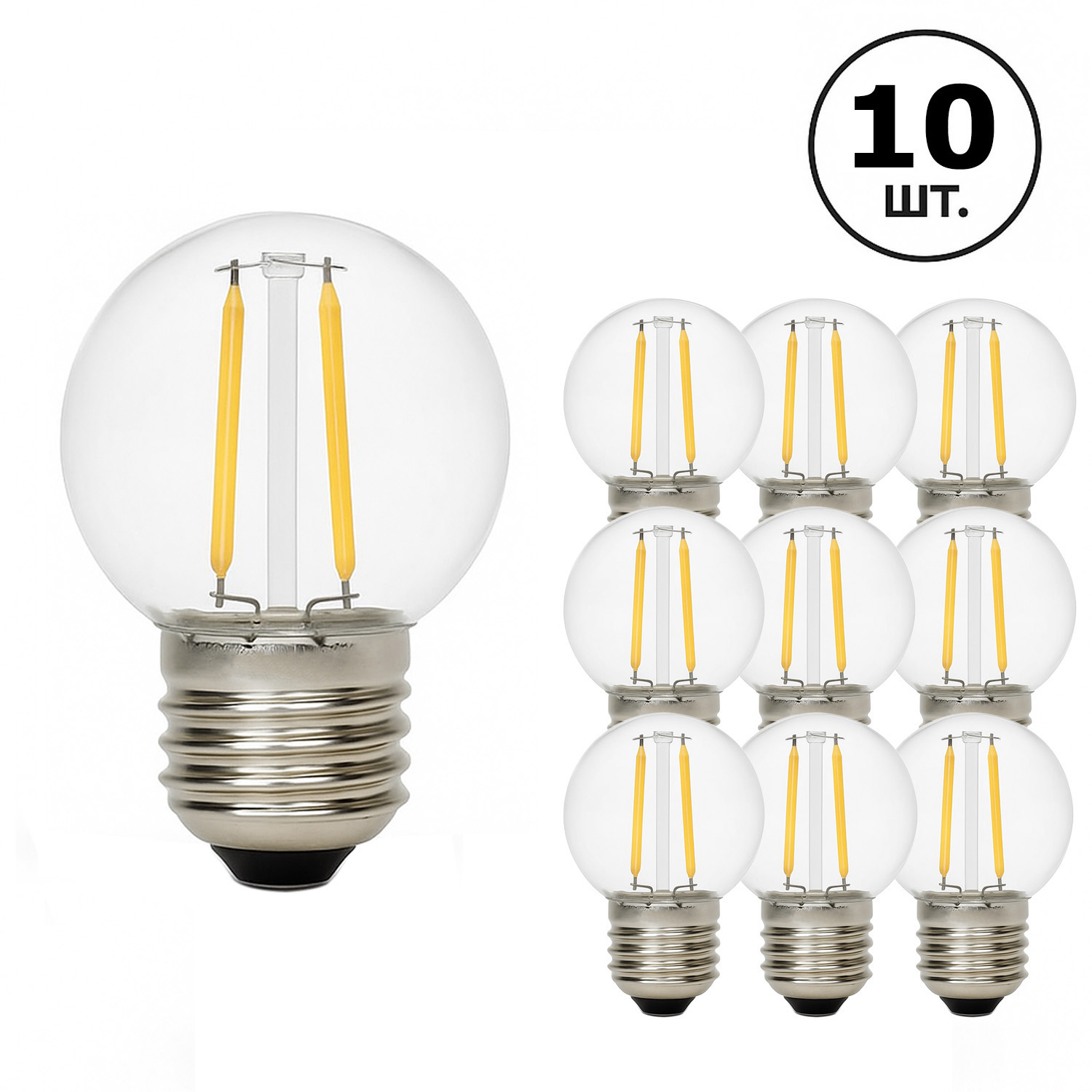 Набір 10шт LED ламп Edisons G45 E27 2W 2200K прозора пластикова колба