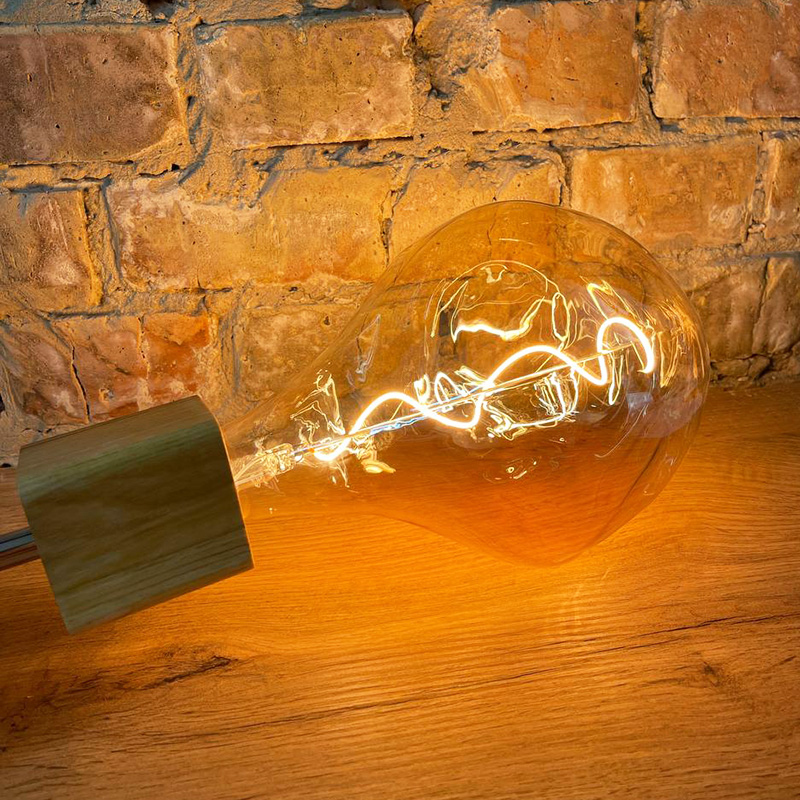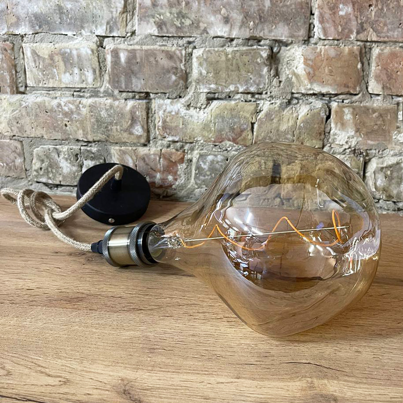 PREMIUM світлодіодна лампа Едісона з магічними світлодіодними нитками нового покоління. Ця лампа відрізняється ексклюзивною формою "м'ятої колби". У поєднанні зі спіральною ниткою виглядає дуже ефектно.