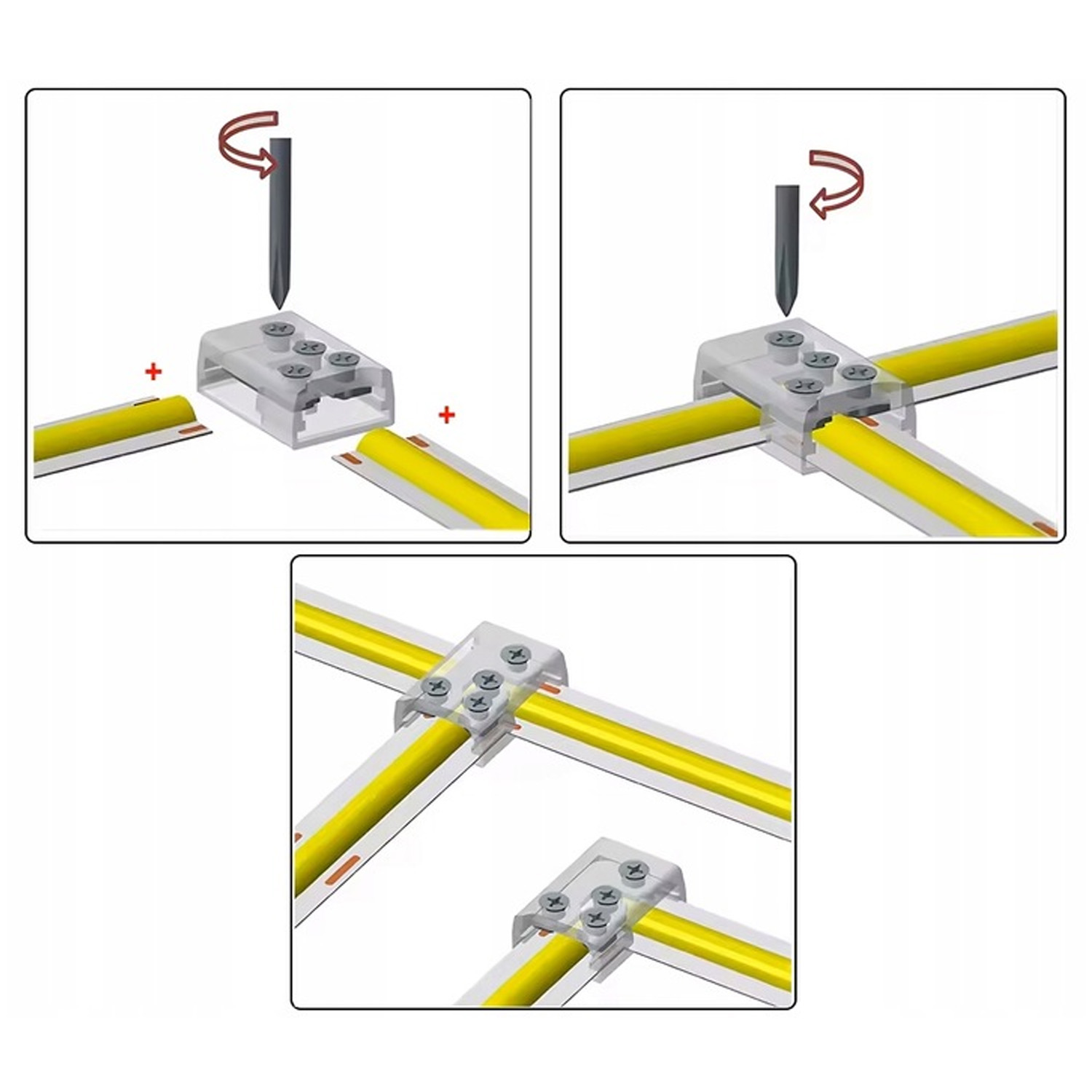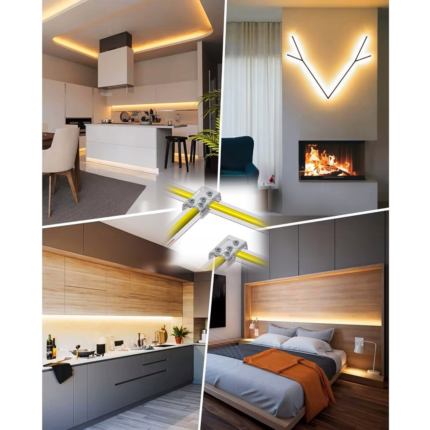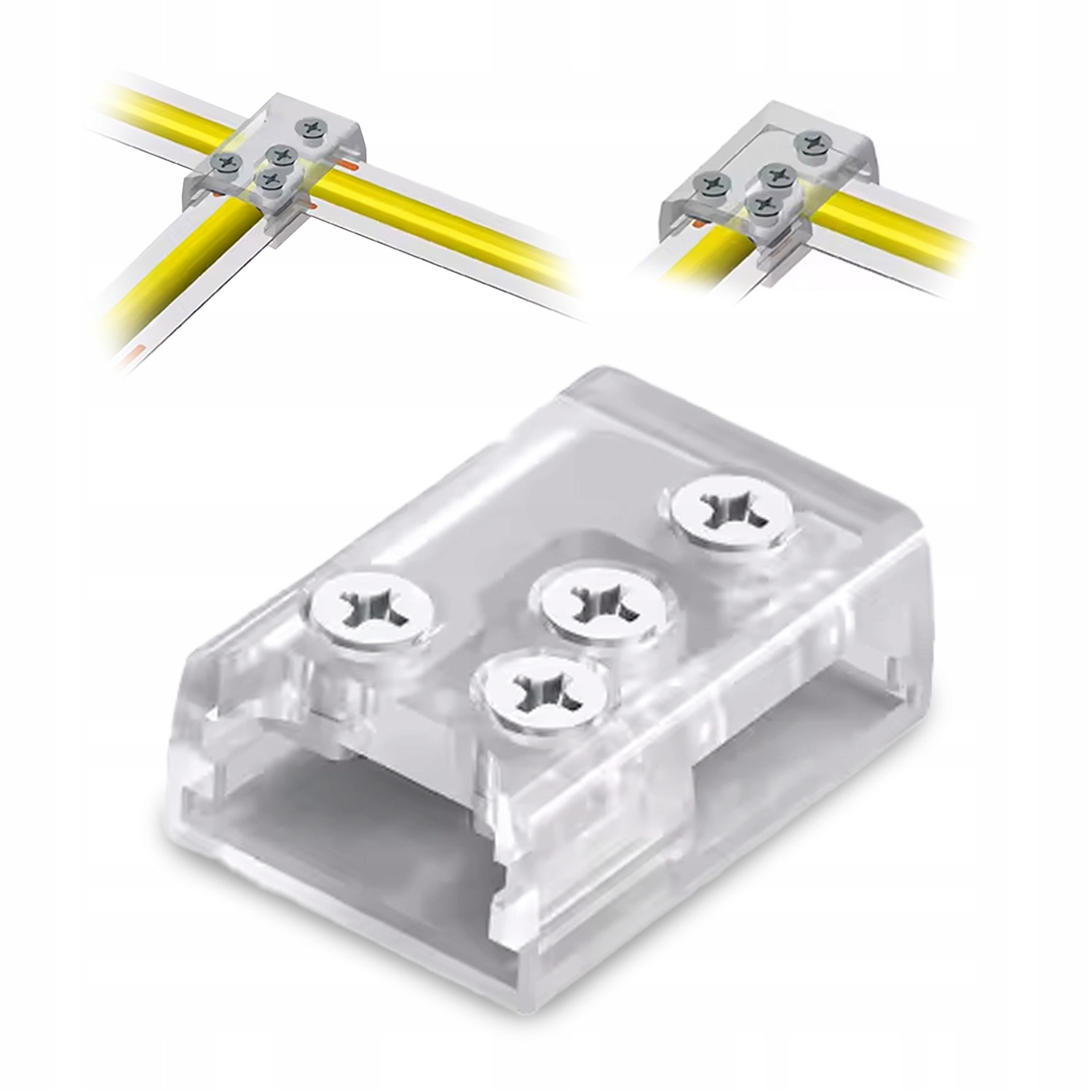 T-подібна форма: Дозволяє з'єднувати світлодіодні стрічки під кутом 90°, створюючи відгалуження в системах освітлення.