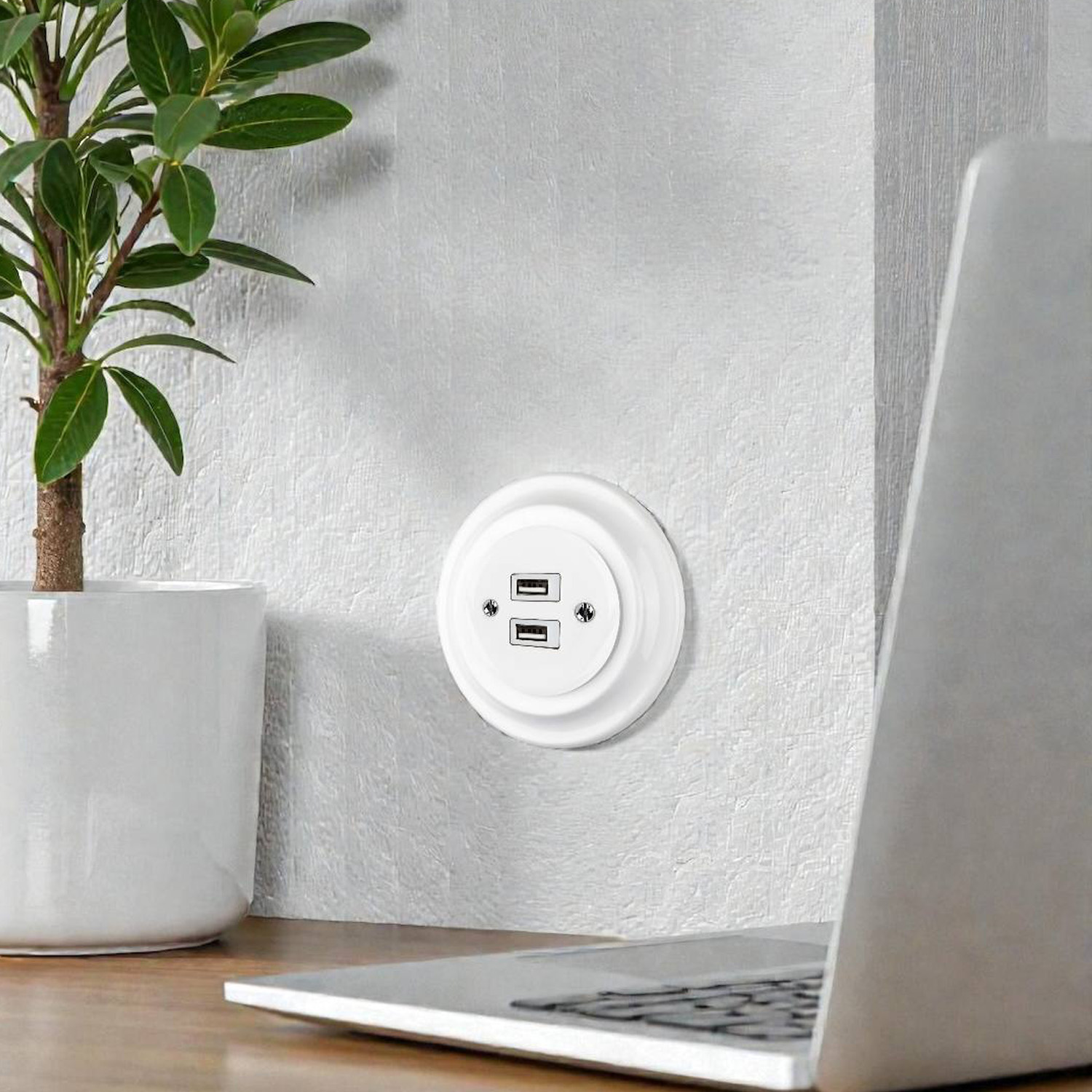 Стильне та практичне рішення для сучасного інтер’єру. Два USB-порти дозволяють зручно заряджати гаджети без адаптерів, а керамічний корпус додає естетики та довговічності.