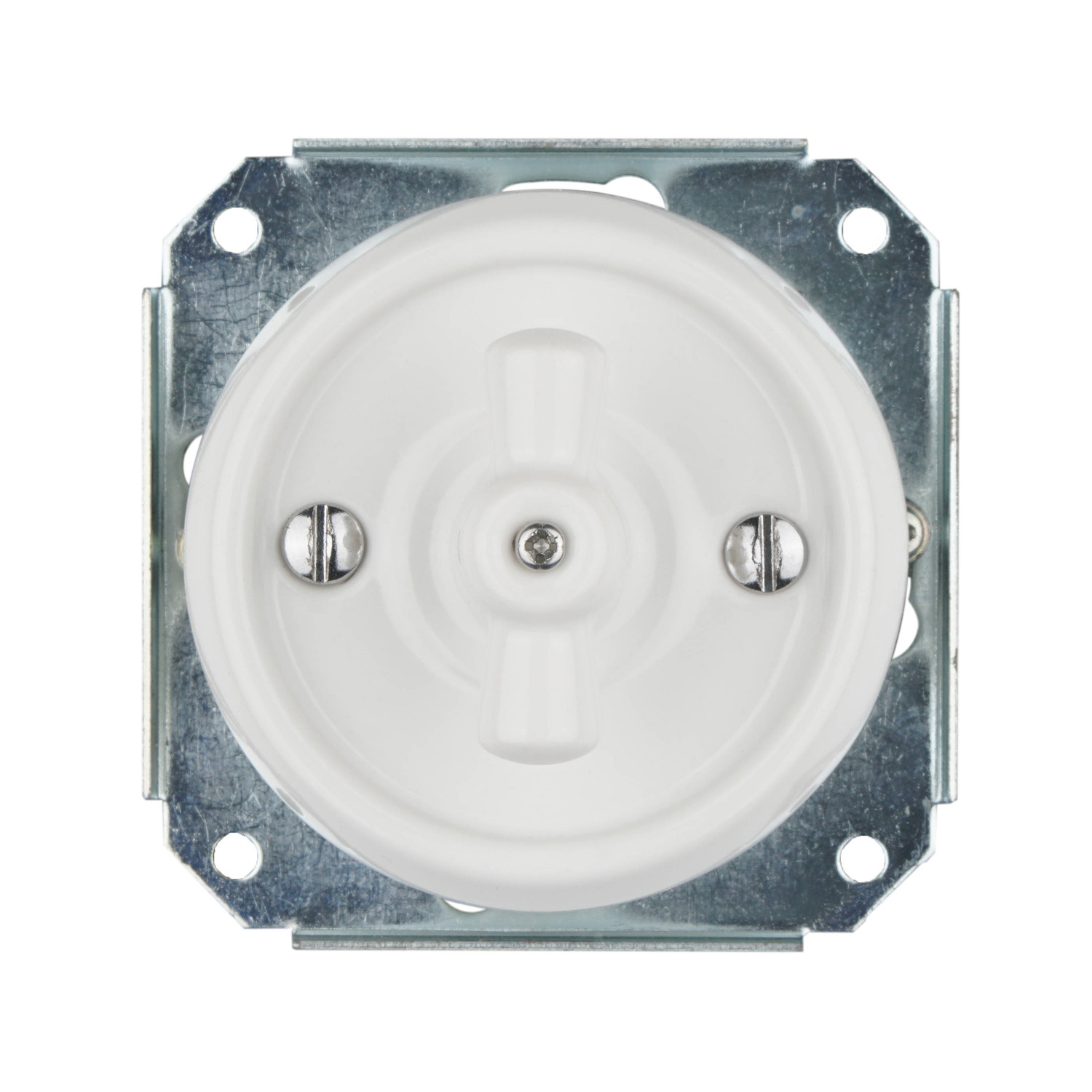 Ретро вимикач керамічний Keruida білий поворотний 1-клавішний прихованого монтажу з дерев'яною рамкою