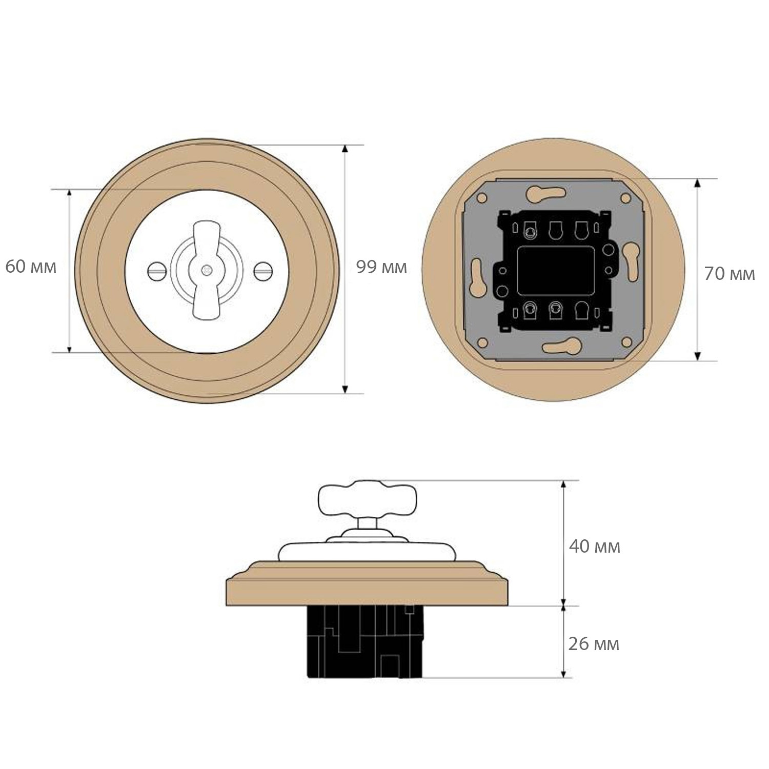 Стильний ретро-вимикач від Keruida, виконаний у поєднанні класичної кераміки та рамки із натурального світлого дерева. Він стане акцентом вашого інтер'єру та гармонійно доповнить приміщення у стилі ретро, сканді, еко чи мінімалізм.