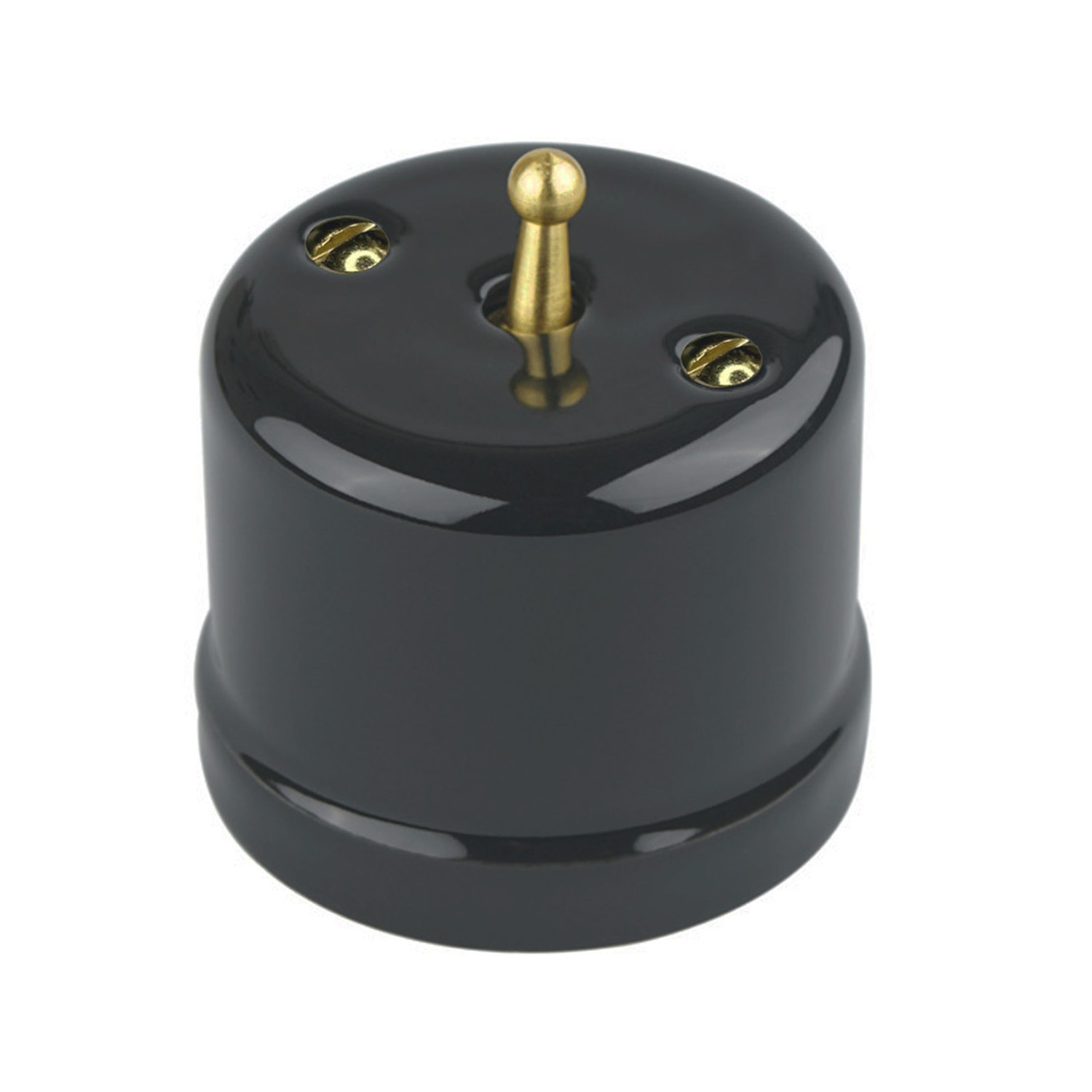 Ретро вимикач керамічний Keruida чорний, тумблерний, 1-клавішний, без рамки