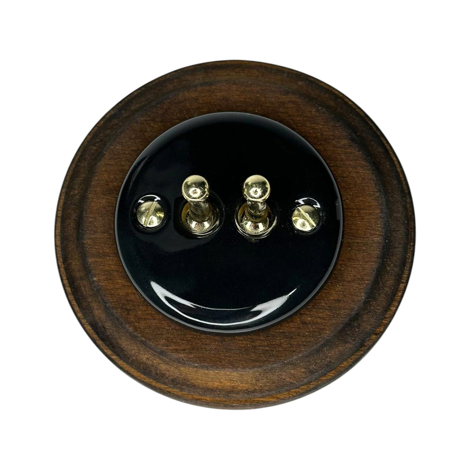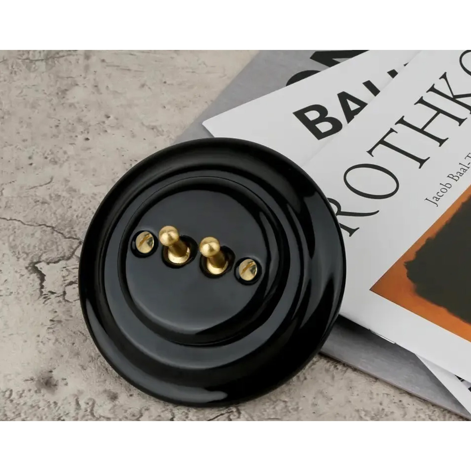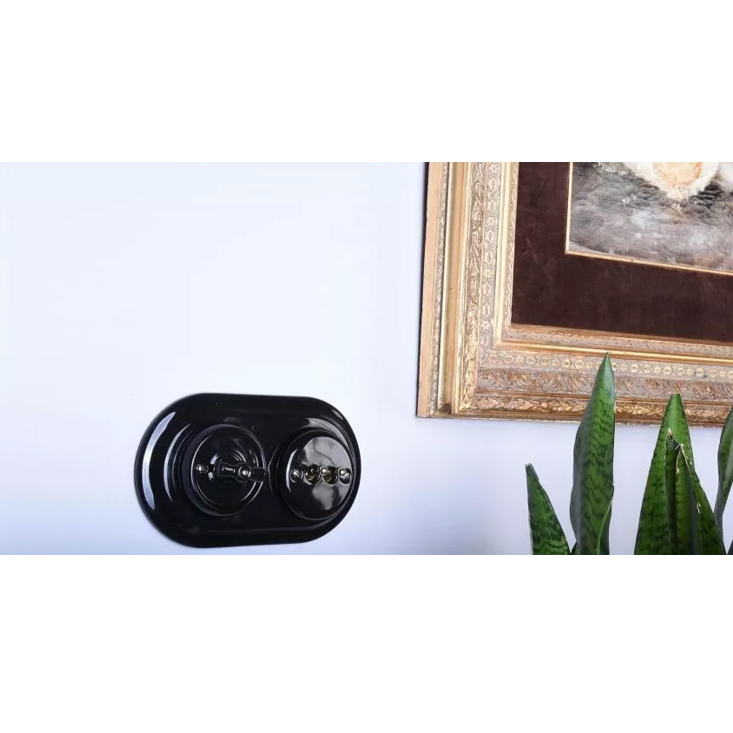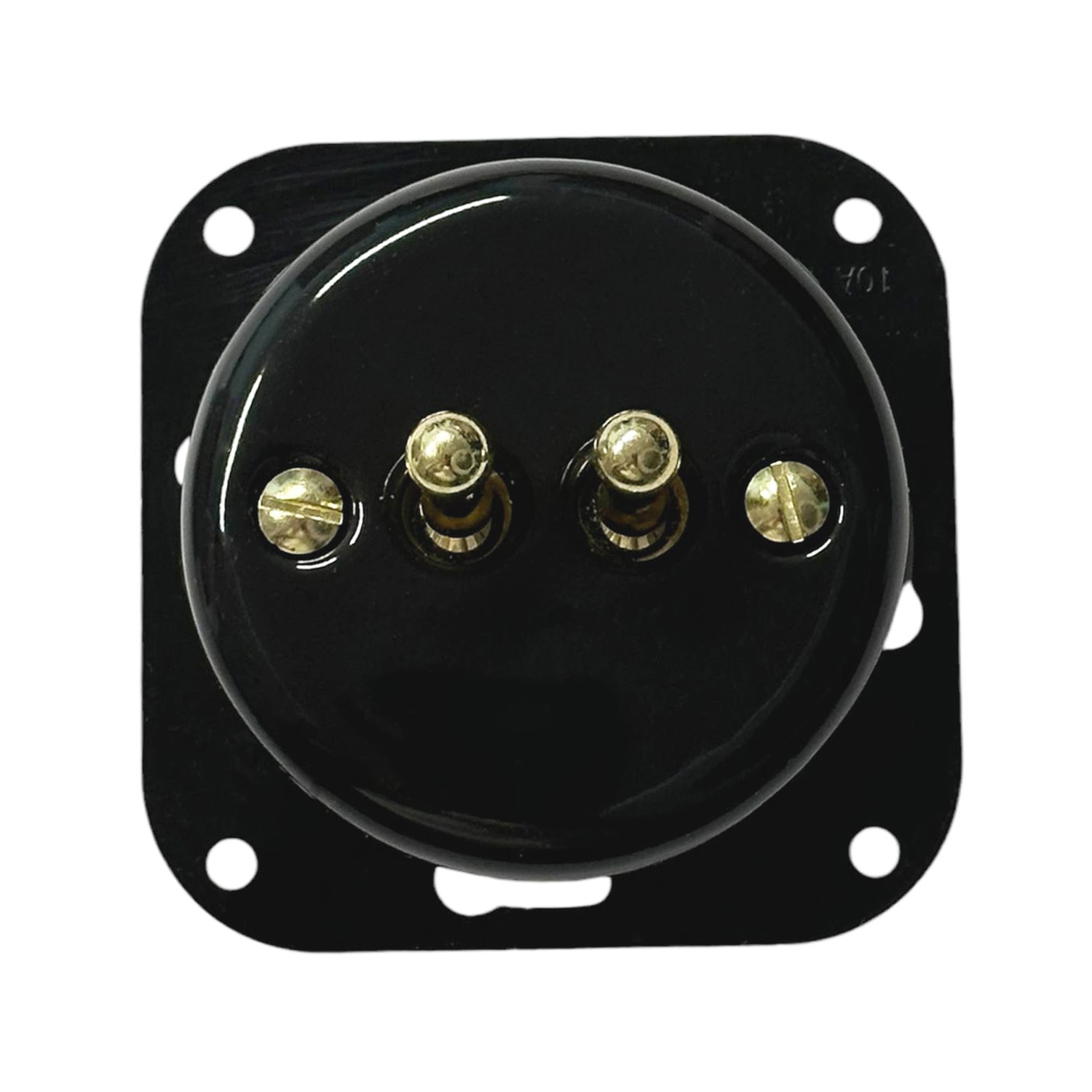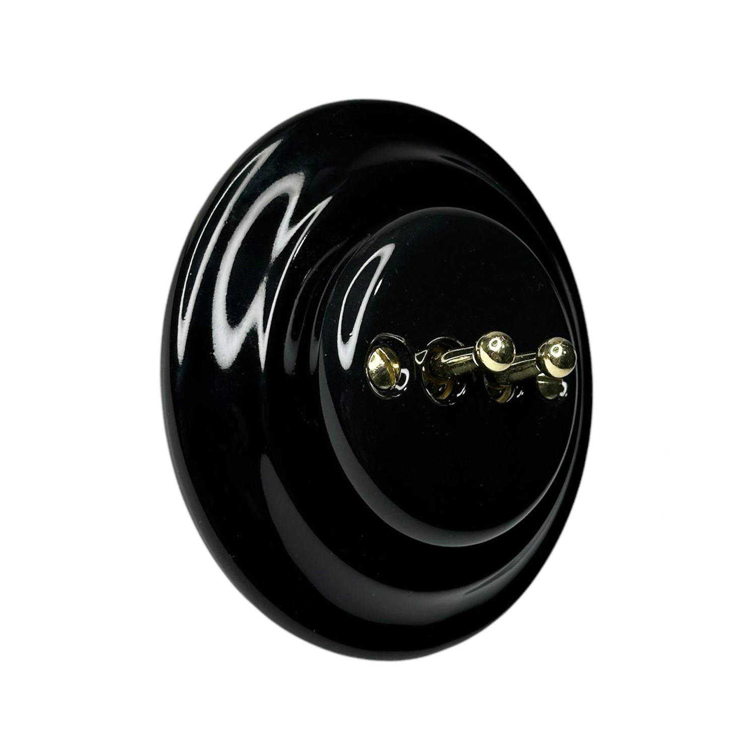 Ретро вимикач керамічний Keruida тумблерний чорний 2-клавішний прихованого монтажу без рамки