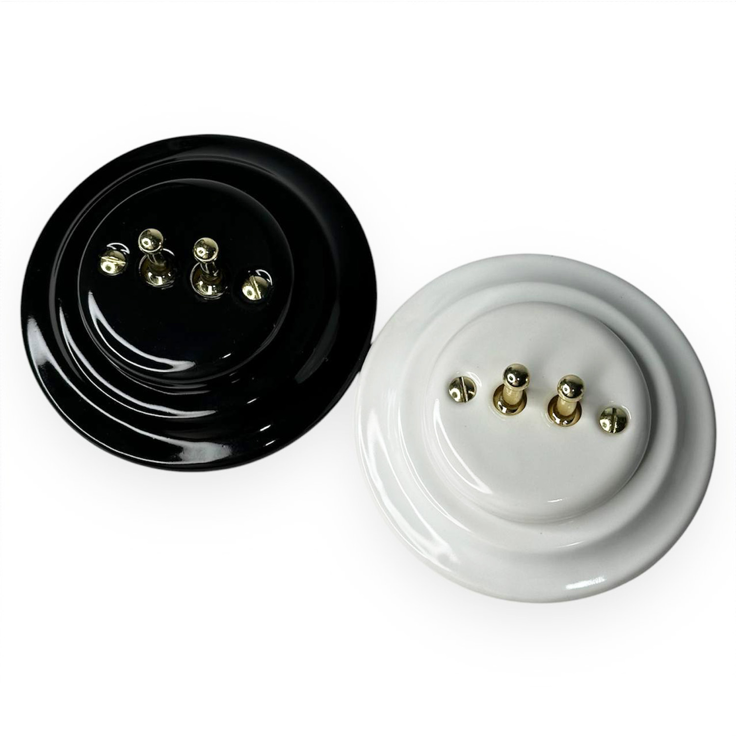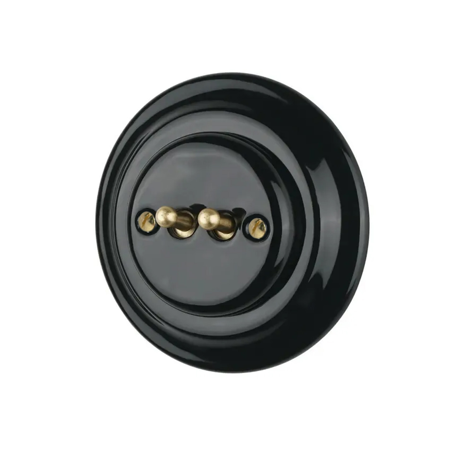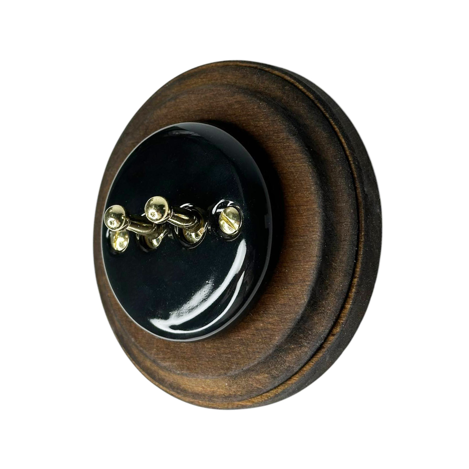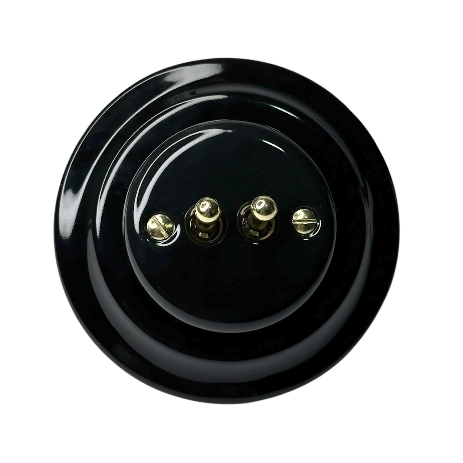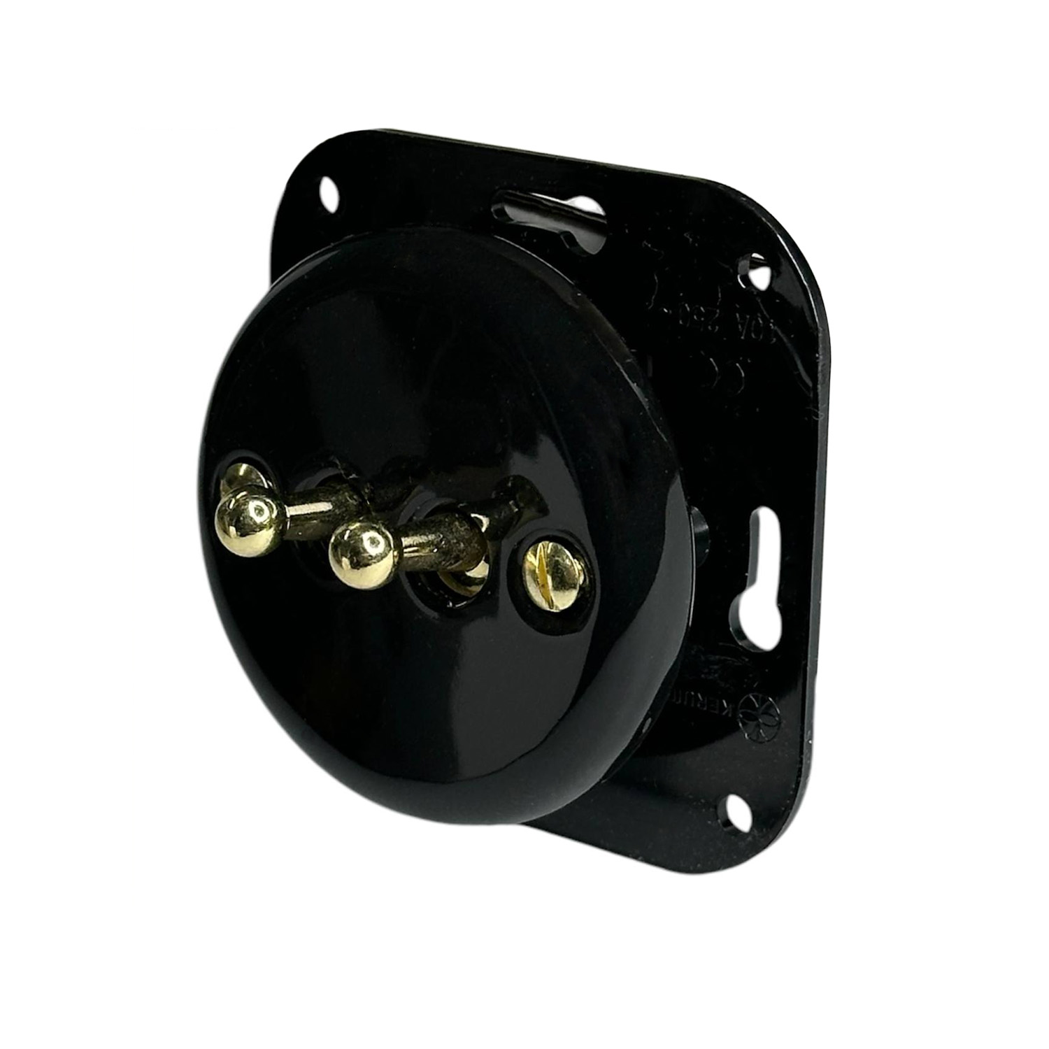 Ретро вимикач керамічний Keruida тумблерний чорний 2-клавішний прихованого монтажу без рамки