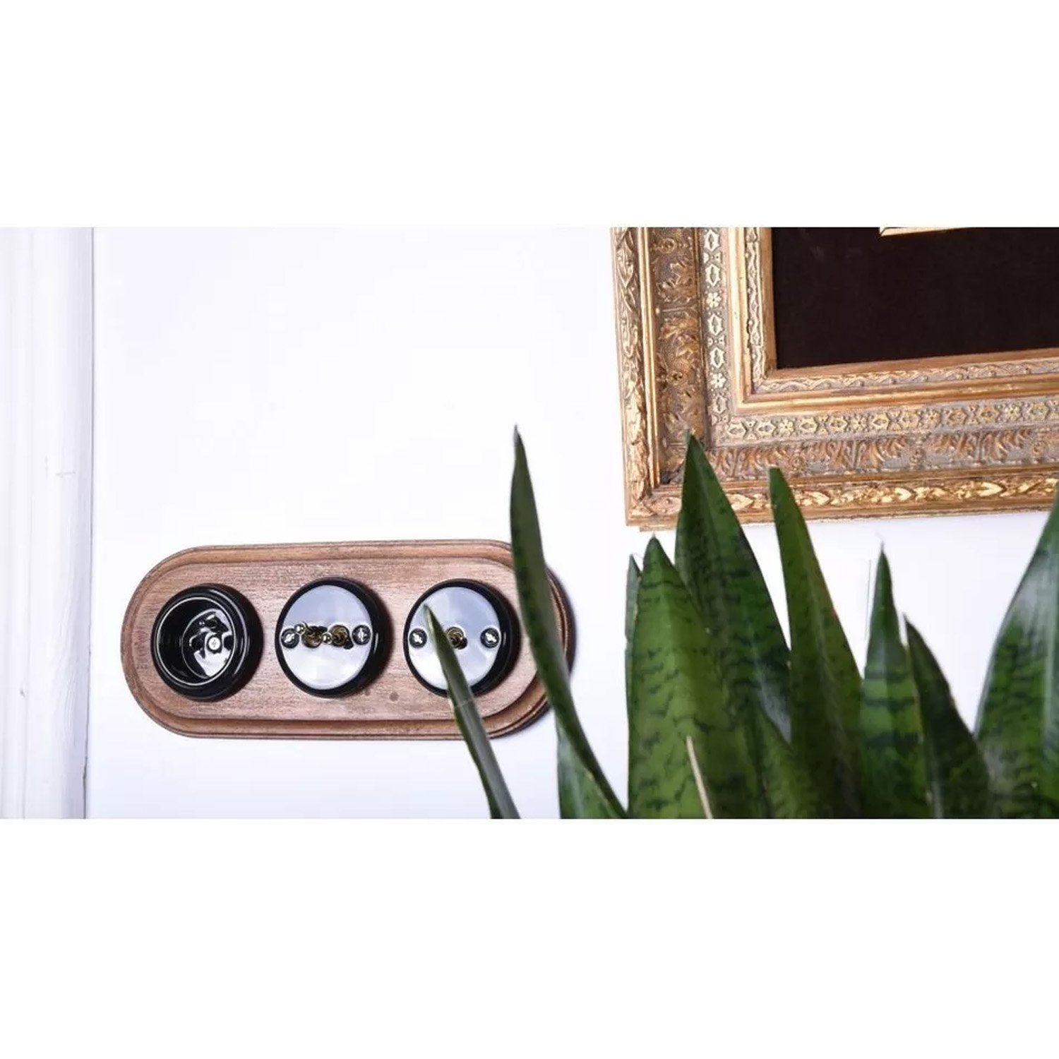 Рекомендація: для створення завершеного ретро інтер’єру вимикач можна поєднувати з керамічними розетками, ретро проводкою та декоративними рамками в одному стилі.
