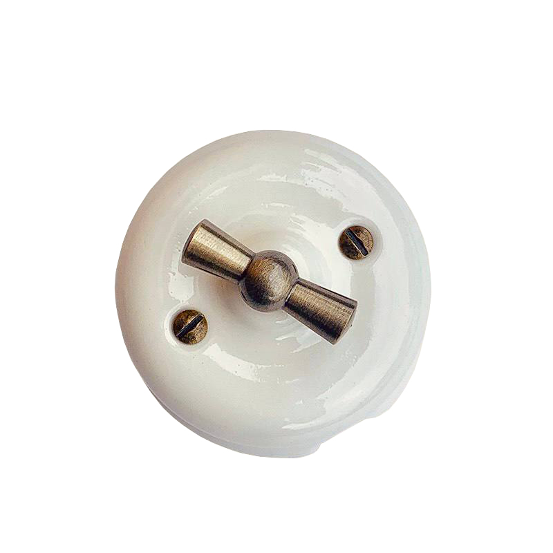 Керамічний ретро вимикач SOFTY Milk — це поєднання витонченого дизайну, натуральних матеріалів і надійної електрофурнітури. Модель виконана у м’якому молочному відтінку та доповнена елегантною бронзовою ручкою перемикача, що надає виробу особливого характеру та робить його стильним елементом інтер’єру.