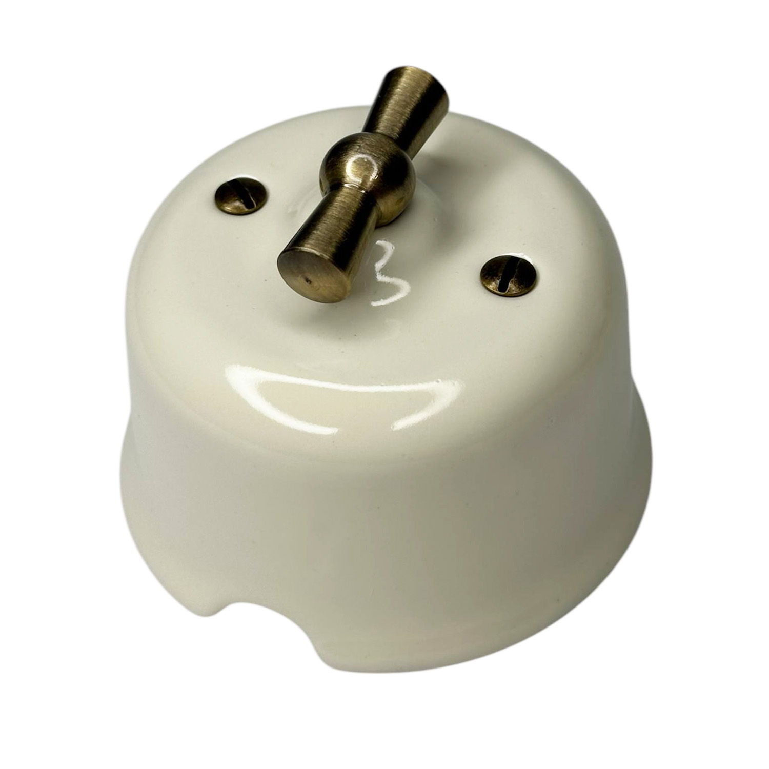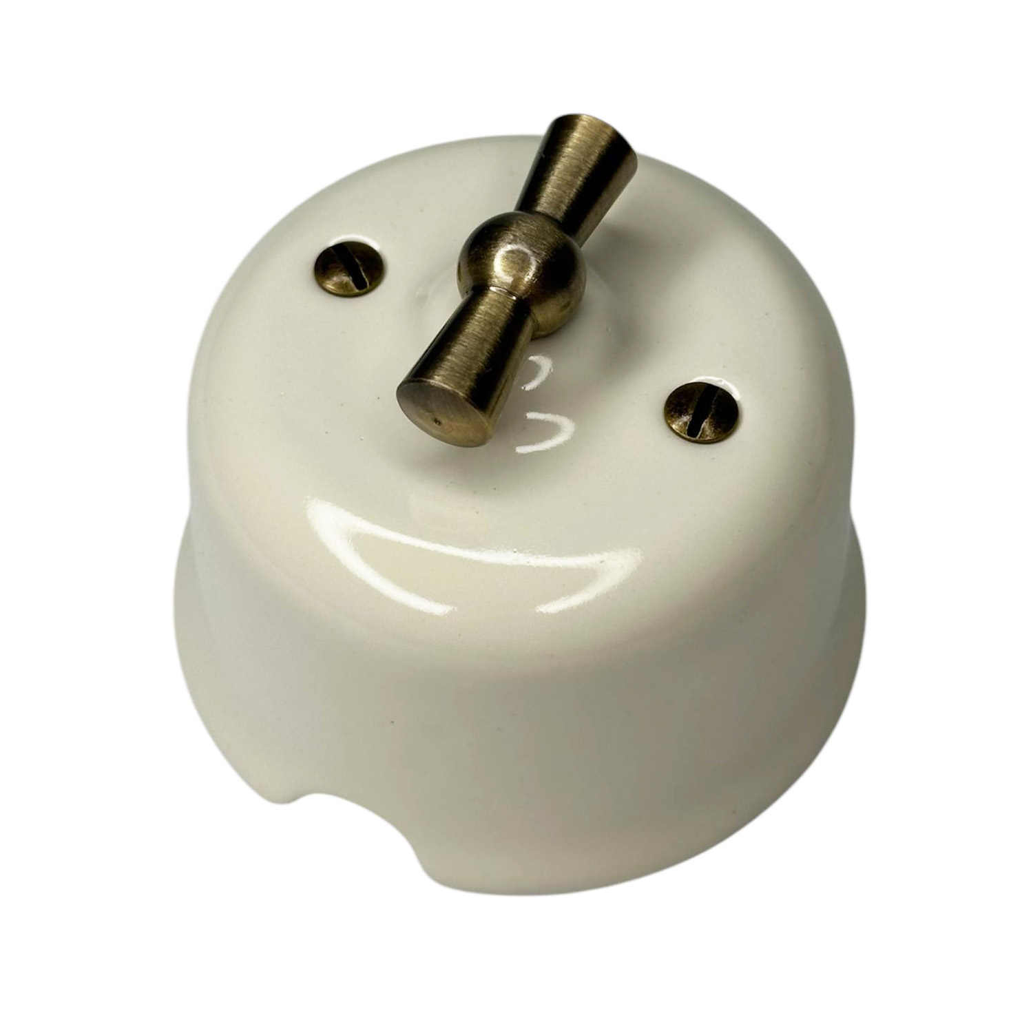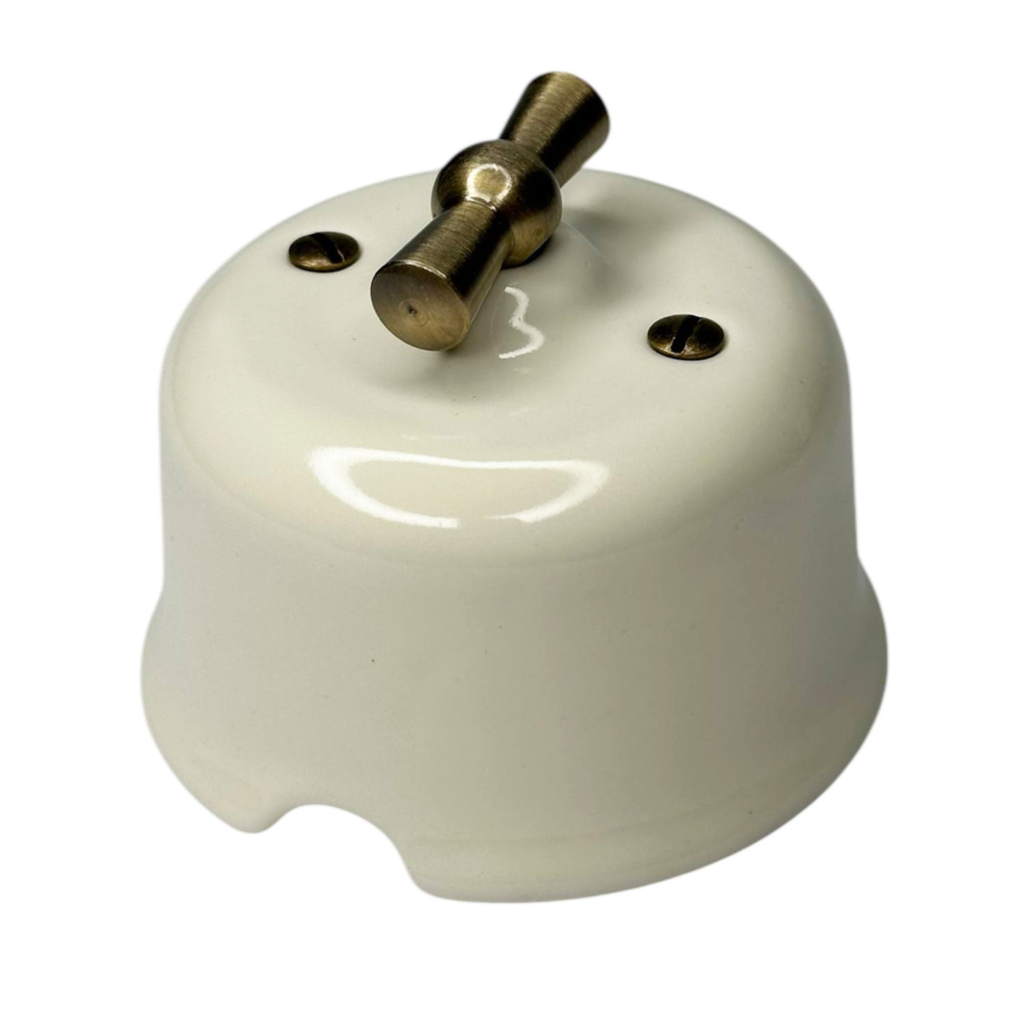 Ретро вимикач керамічний SOFTY Milk, 1-клавішний, з бронзовою ручкою (без рамки)