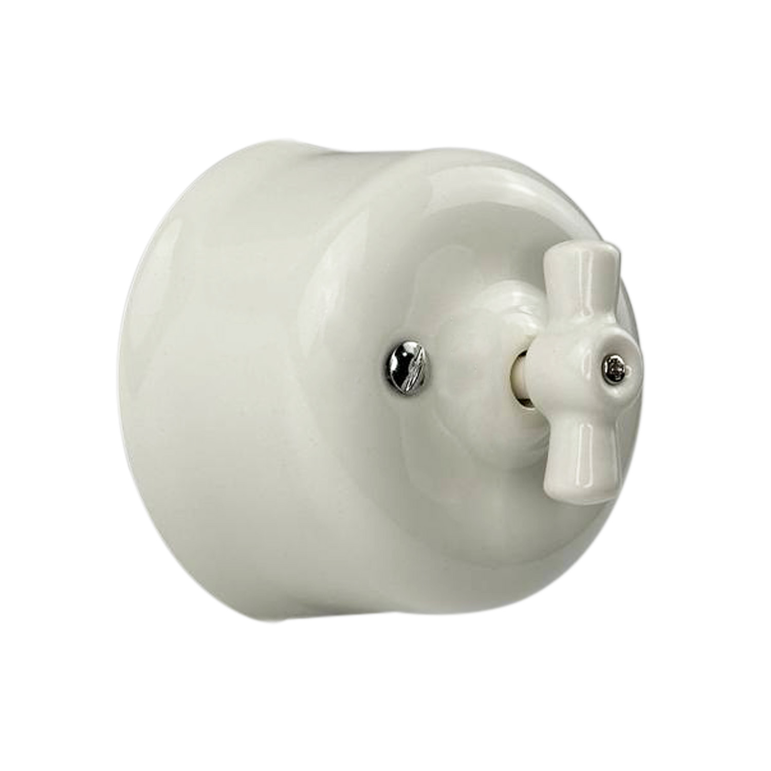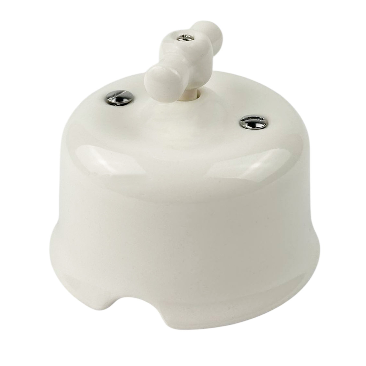 Ретро вимикач керамічний SOFTY White, 1-клавішний, з білою ручкою (без рамки)