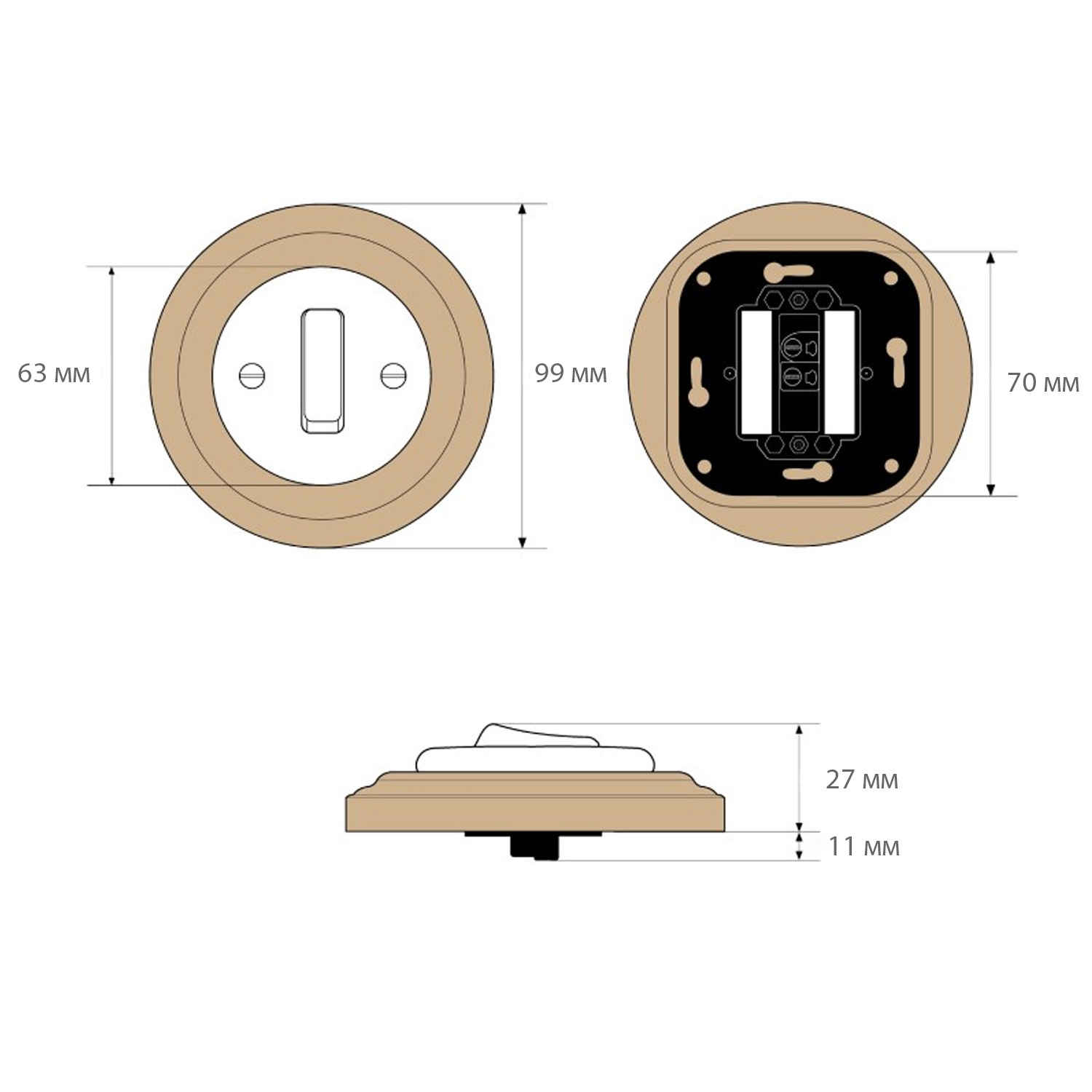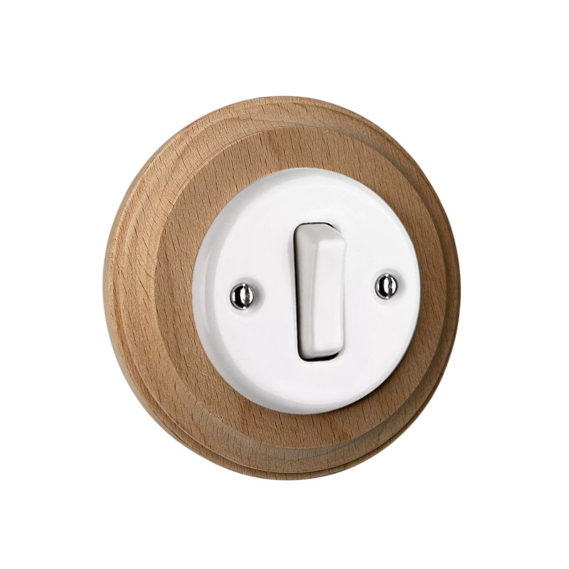 Даний вимикач використовуються для монтажу прихованої проводки в ретро стилі. Механізм для керамічного вимикача прихованого монтажу встановлюється з дерев'яною рамкою, яка входить до комплекту.