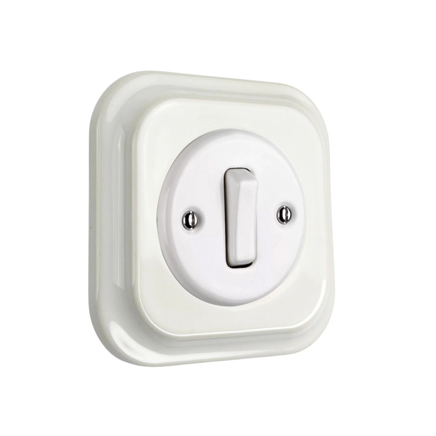 Керамічний ретро вимикач Keruida білий, 1-клавішний, з квадратною рамкою, прихованого монтажу
