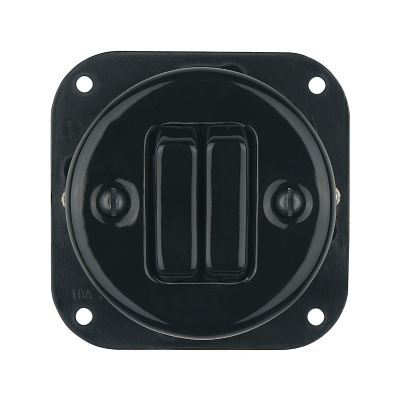 Ретро вимикач керамічний Keruida чорний, 2-клавішний, прихованого монтажу