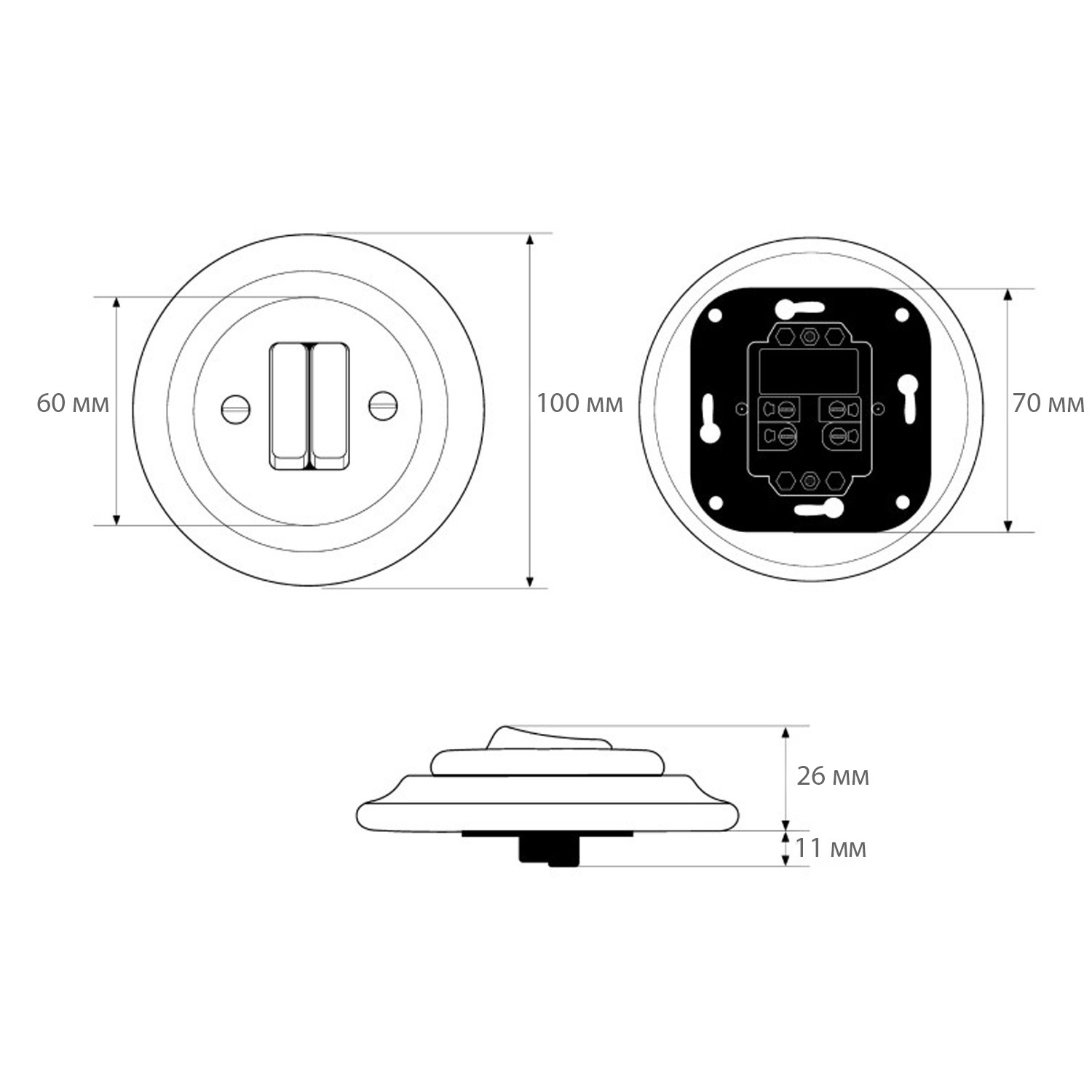 Тип: ретро вимикач, 2-клавішний