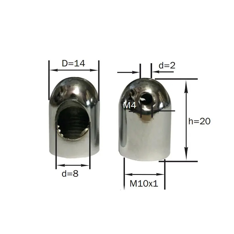 Размер, (мм): d1 (для троса)=2 мм, d2 (для провода)=8 мм, D=14 мм, h=20 мм