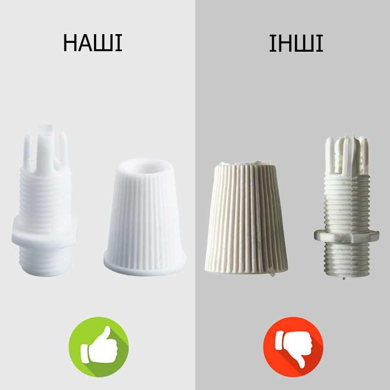 Втулка надежно фиксирует провод в патроне, она выполнена из качественного материала.