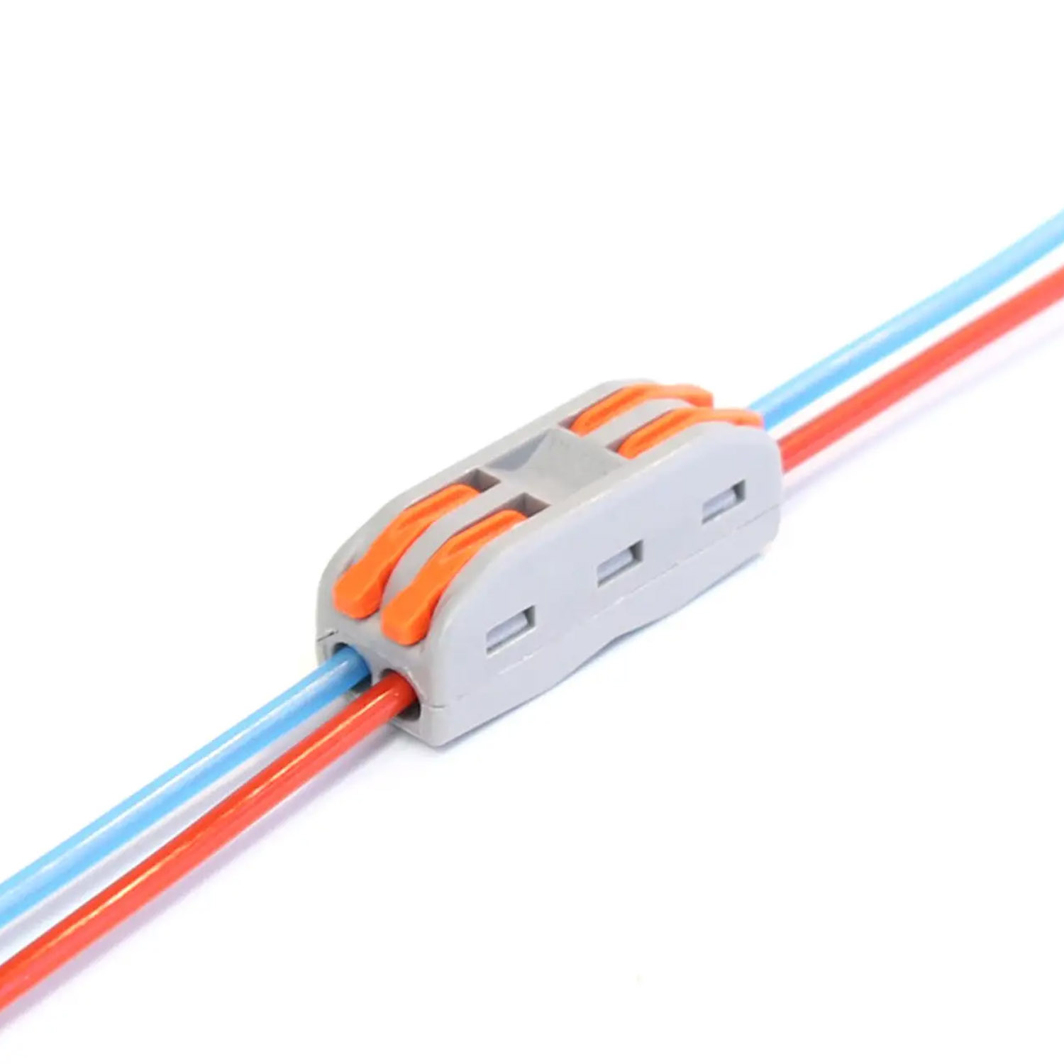 Клемма проходная типа WAGO предназначена для подключения одножильных и многожильных проводников диаметром от 0,08 мм2 до 4 мм2 (AWG28-12). Клемма быстрого монтажа 2 на 2 провода, с нажимными рычагами. Подключение без использования инструмента.