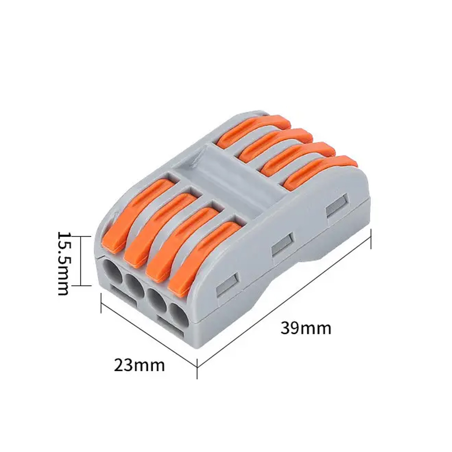 Клемма проходная типа WAGO 4 на 4 провода предназначена для подключения одножильных и многожильных проводников диаметром от 0,08 мм2 до 4 мм2 (AWG28-12). Клемма быстрого монтажа 4 на 4 провода, с нажимными рычагами. Подключение без использования инструмента.