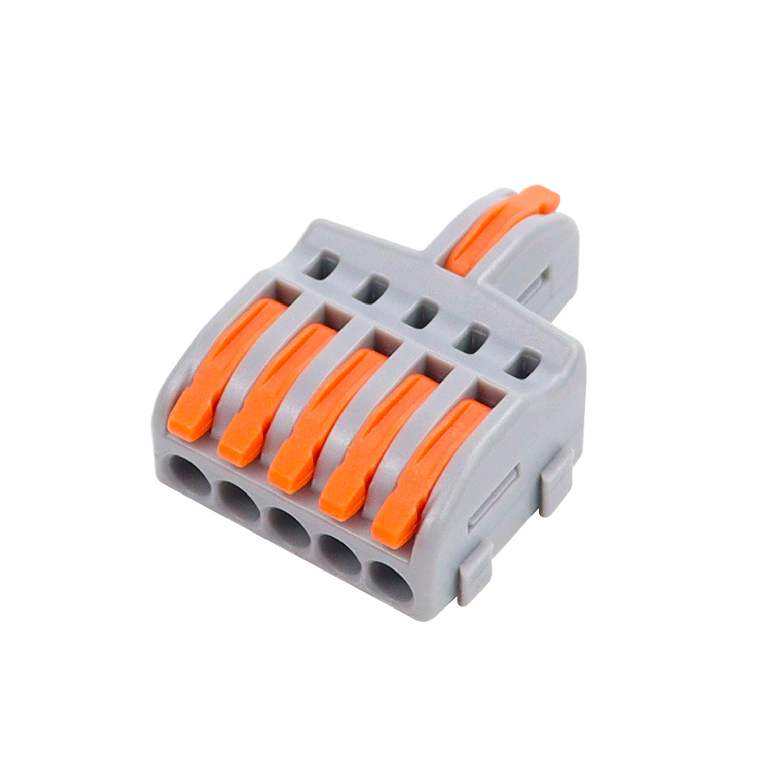 Клемма разветвляющая типа WAGO 1 на 5 проводов предназначена для подключения одножильных и многожильных проводников диаметром от 0,08 мм2 до 4 мм2 (AWG28-12). Клемма разветвляющая с 1 на 5 проводов, с нажимными рычагами.