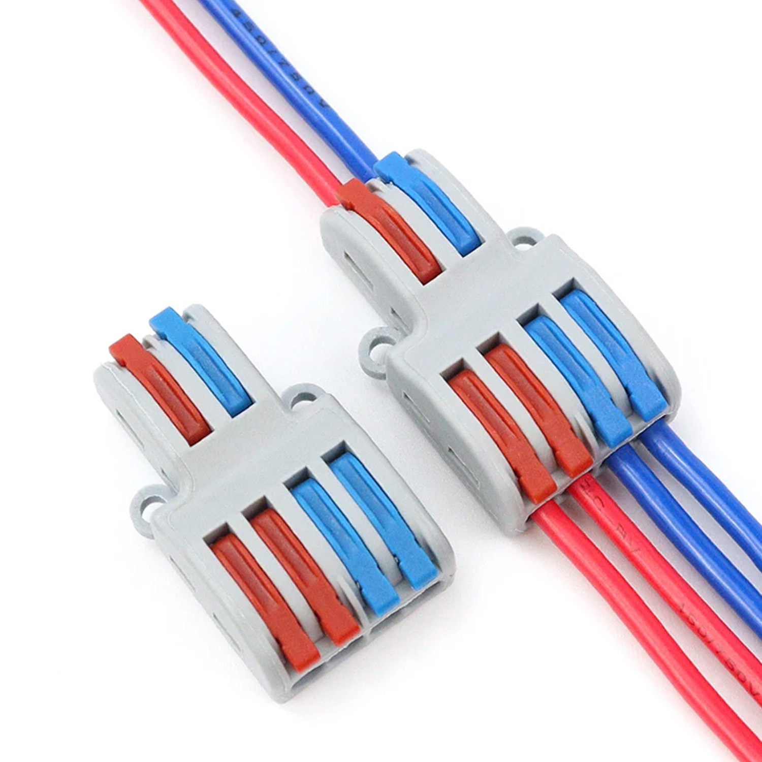 Клемма разветвляющая типа WAGO 2 на 4 провода предназначена для подключения одножильных и многожильных проводников диаметром от 0,08 мм2 до 4 мм2 (AWG28-12). Клемма разветвляющая с 2 на 4 провода, с нажимными рычагами.