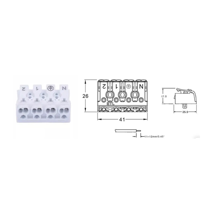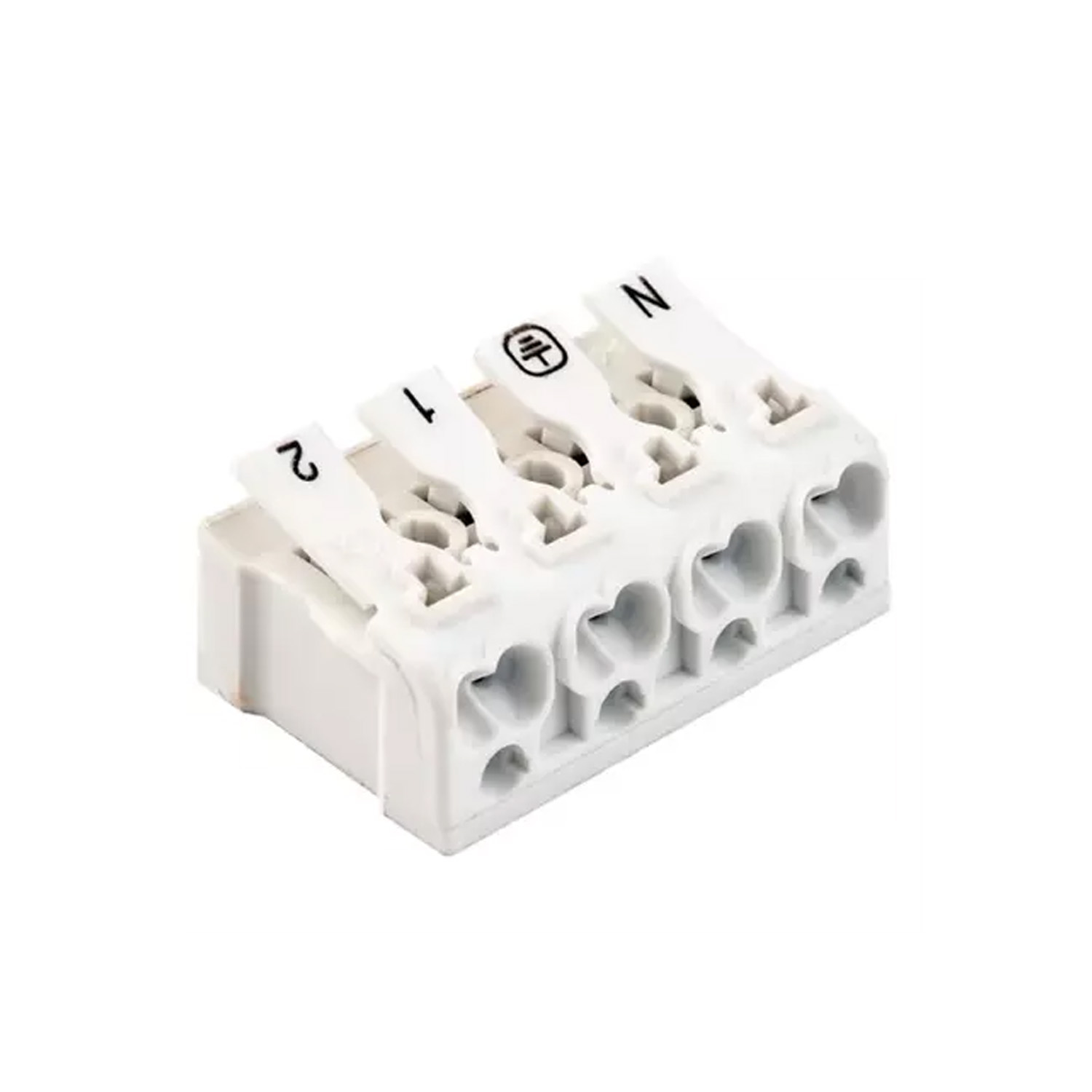 Клемная колодка на 4 контакта для соединения проводов. Позволит быстро и надежно соединять проводники без применения инструмента и специальных навыков.
