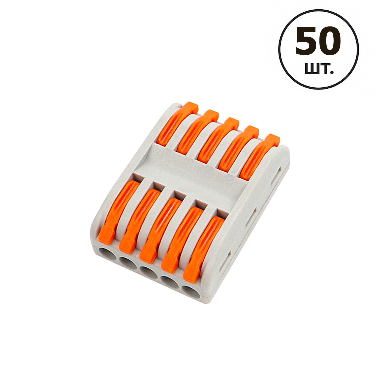 Набор 50 шт. Клемм проходных типа WAGO 5 на 5 проводов 0.08–4 мм²/12–28AWG 32А 250В рычажный зажим Premium