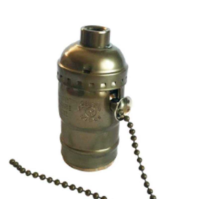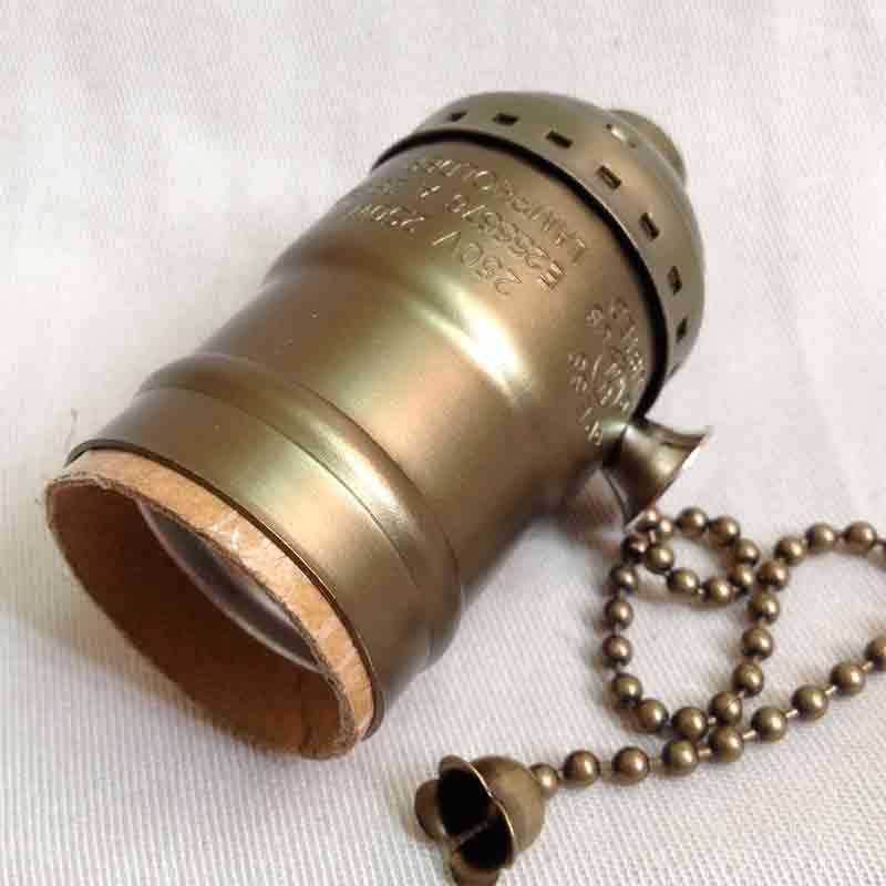 Алюминиевый ретро-патрон Е27 Бронза для ламп Эдисона (эконом серия) с выключателем цепочка