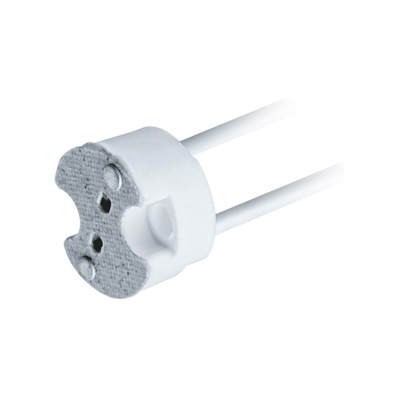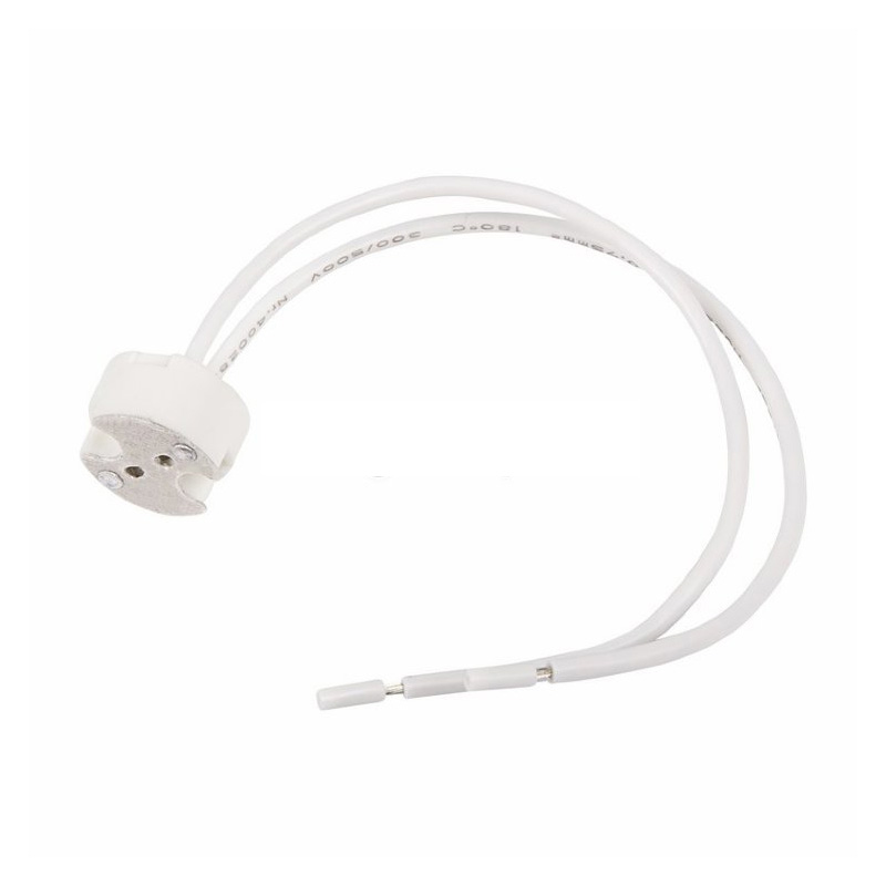 Патрон керамический для галогенных ламп в белом цвете. Используется для светильников, люстр и других осветительных приборов.