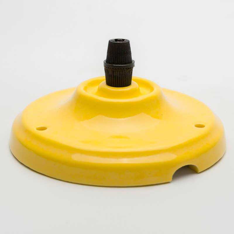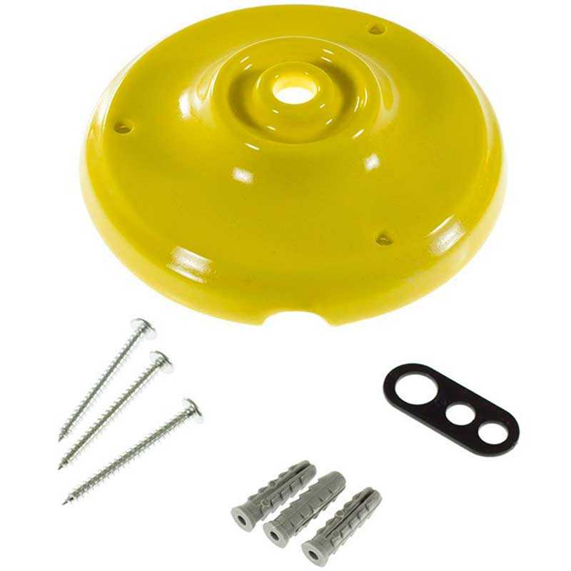 Керамическая потолочная чашка 106 мм (желтая) Если вы решили собрать люстру, настенный или потолочный светильник с лампами Эдисона и проводами в тканевой оплетке то вам не обойтись без керамической потолочной чашки. Она отлично сочетается со всеми аксессуарами представленными в нашем интернет-магазине и позволит быстро и легко воплотить вашу идею в жизнь. Материал: керамика Цвет: желтый Размеры: d = 10 mm d1 = 4 mm D = 106 mm h = 31 mm
