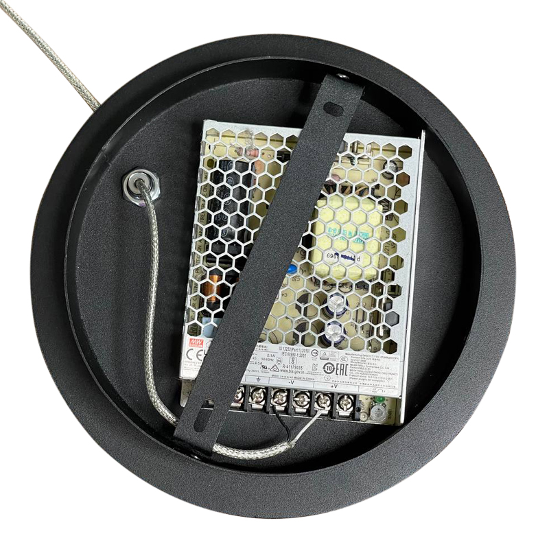 Внутренняя часть корпуса потолочного крепления позволяет разместить блок питания мощностью до 150Вт.