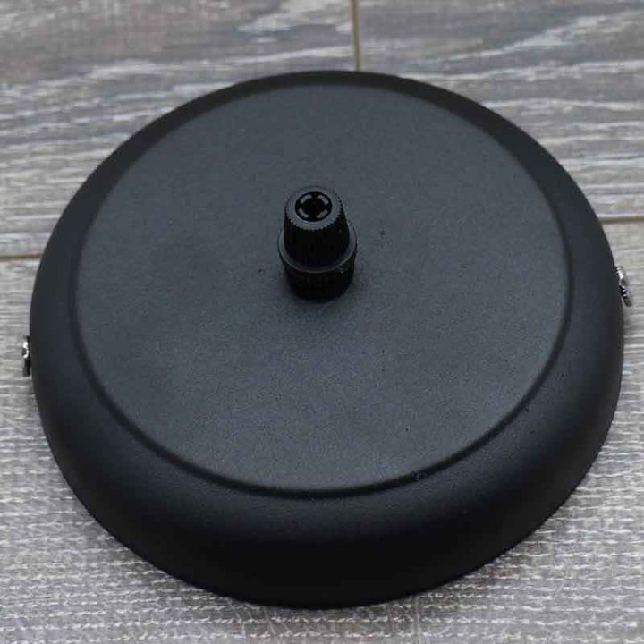 Розетка потолочная черная диаметром 120мм с потолочным креплением и фиксатором провода.