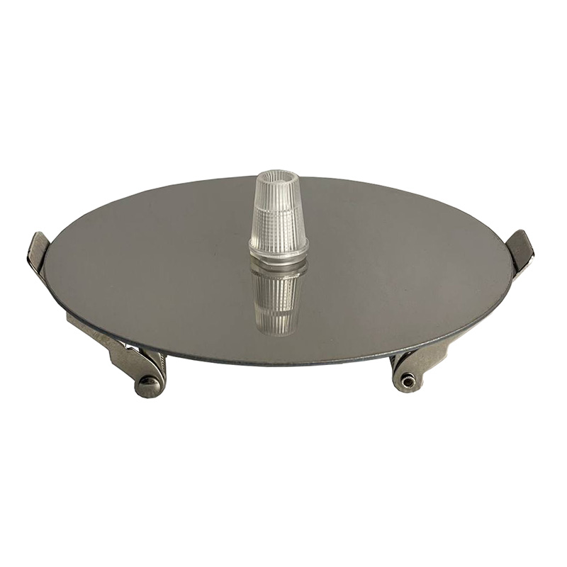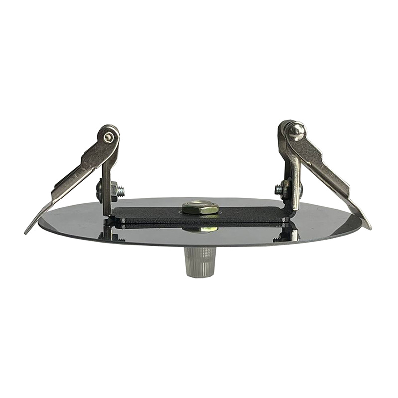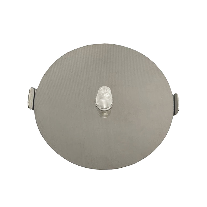 Розетка потолочная врезная диаметром 120 мм с потолочным креплением и фиксатором провода. Выглядит минималистично и стильно.