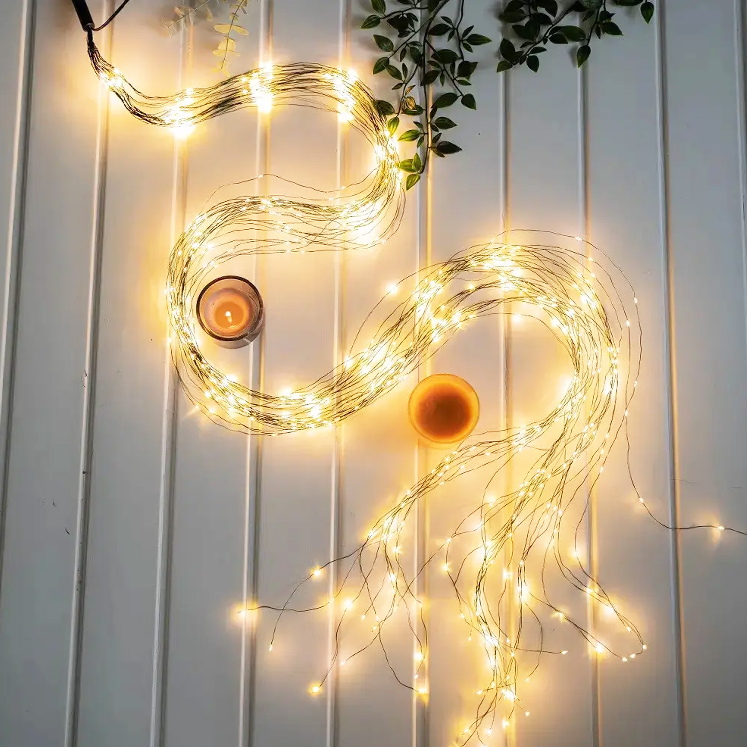 Новогодняя гирлянда "Конский хвост" — это гирлянда-поток с мягким миганием, идеально подходящая для оформления фасадов, витрин, балконов, террас или праздничного декора в помещении. Благодаря 1200 ярким LED-диодам и длине 2 метра на 30 гирляндных нитей, она создает впечатляющий визуальный эффект.