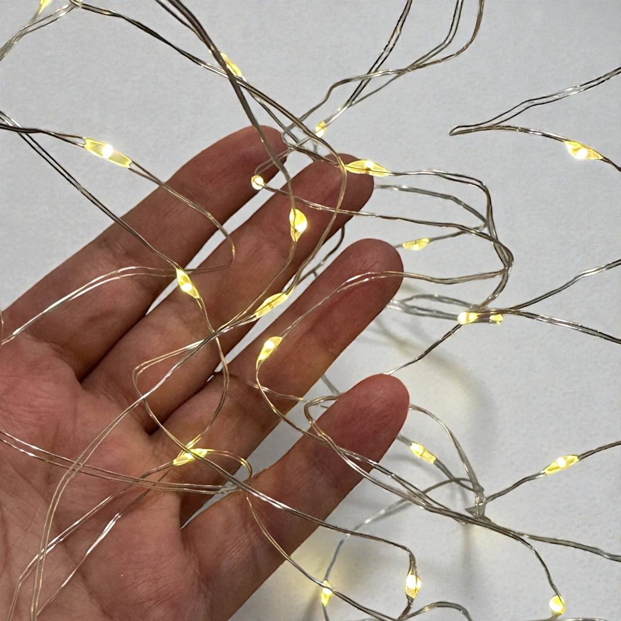 Гирлянда Конский хвост состоит из 10 тончайших нитей медной проволоки длиной 200 см. На каждой нити расположены мини светодиоды теплого белого цвета общим количеством 200 шт. по 20 штук на каждой нити. Гирлянда работает от USB или батареек 3хАА (в комплект не входят) .