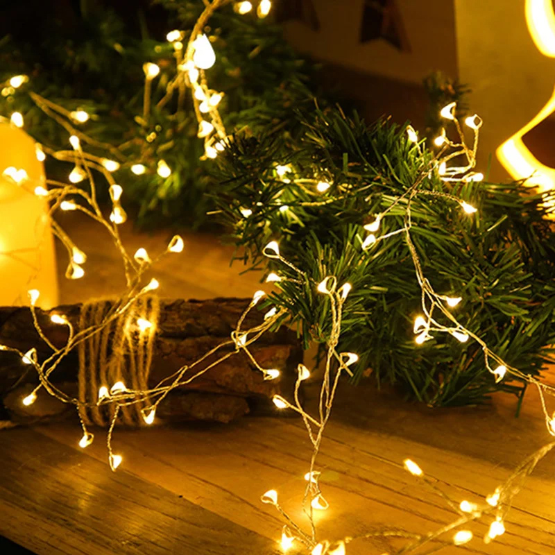 Новая LED гирлянда новогодняя Роса плетеная так же, как и компактная LED гирлянда на батарейках с капельными светодиодами, выглядит очень красиво. Мелкие светодиоды в изоляции в виде капли на тонкой гибкой проволоке и огоньки в пластиковом корпусе в виде фигурок – это не просто праздничная иллюминация, но и отличный фон для фотозоны.