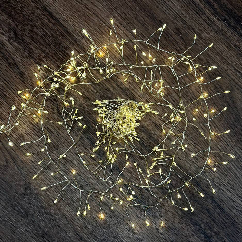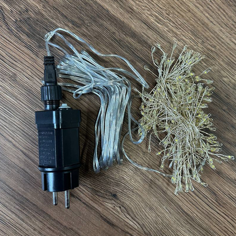 LED гирлянда новогодняя Роса плетенная 300LED 3м цвет Теплый Белый 8 режимов от 220В
