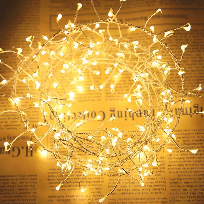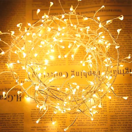 LED гирлянда Роса плетенная 300LED 3м цвет Теплый Белый 8 режимов от 220В и USB с пультом ДУ