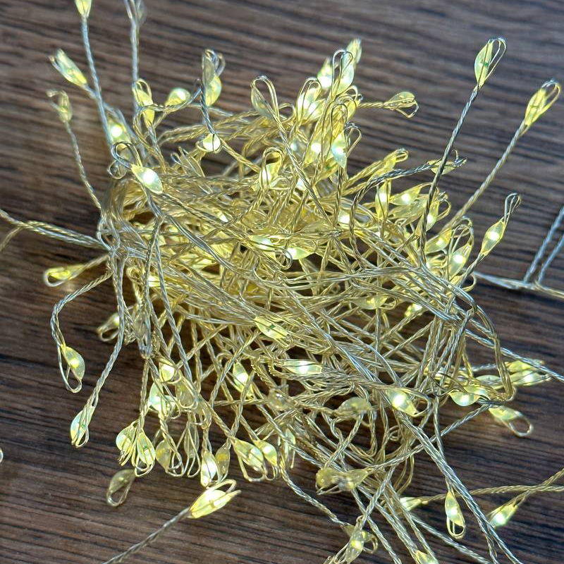 Новая LED гирлянда новогодняя Роса плетеная так же, как и компактная LED гирлянда на батарейках с капельными светодиодами, выглядит очень красиво. Мелкие светодиоды в изоляции в виде капли на тонкой гибкой проволоке и огоньки в пластиковом корпусе в виде фигурок – это не просто праздничная иллюминация, но и отличный фон для фотозоны.