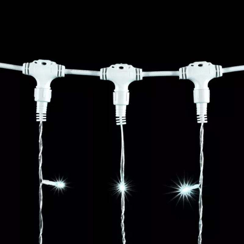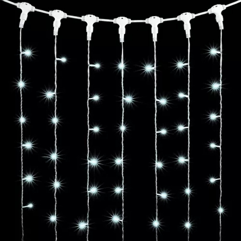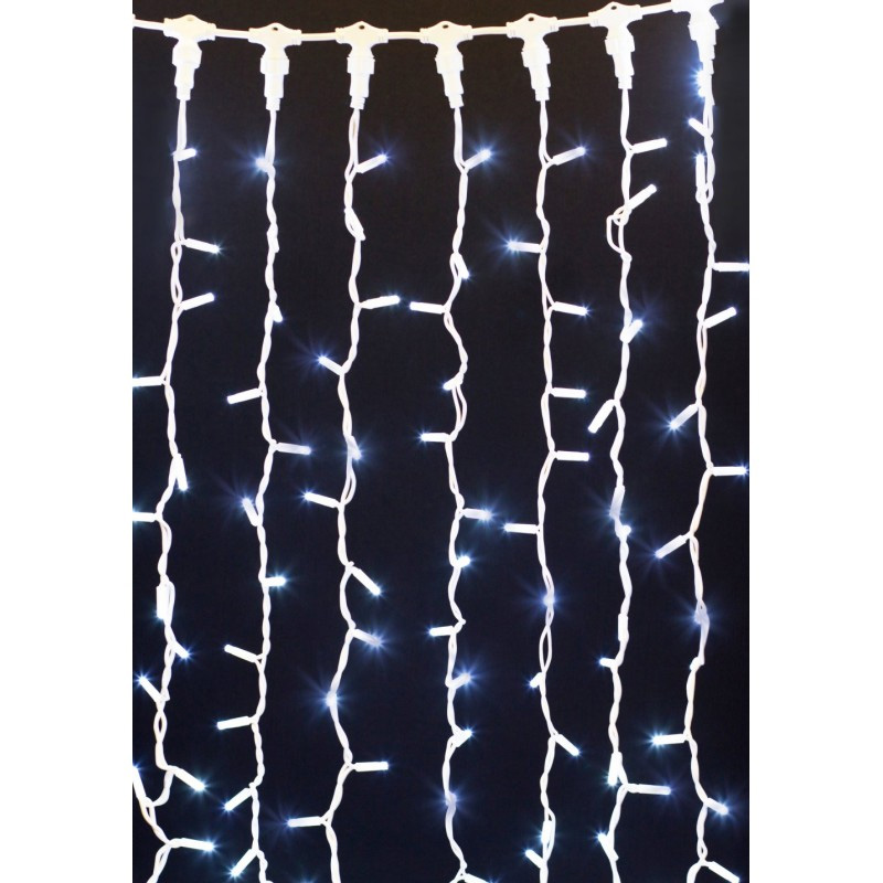 Светодиодная уличная гирлянда Штора — световая завеса, которая состоит из одного горизонтального провода и вертикально отходящих от него 20 сегментов одинаковой длины. Это один из самых популярных вариантов декоративного освещения, так как гирлянда безопасна, экономно потребляет электроэнергию, прекрасно переносит температурные перепады и позволяет сказочно украсить даже самое невыразительное помещение.
