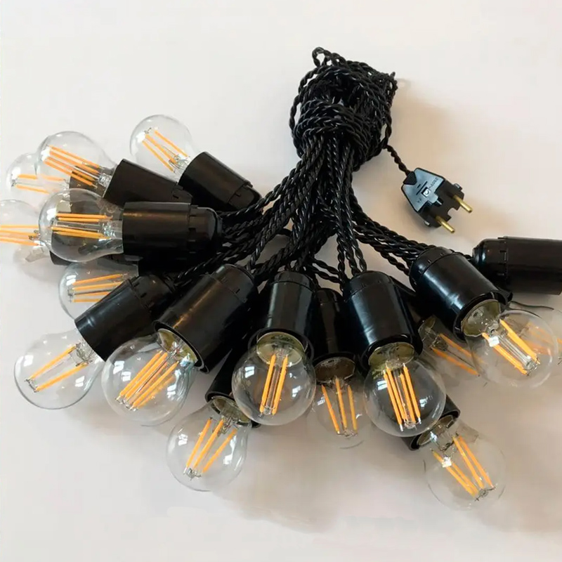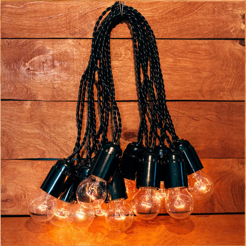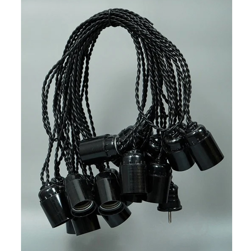 Ретро гирлянда 5 метров 11 патронов Е27 с влагозащитой IP33 Twisted ПВХ (Без ламп) Эконом