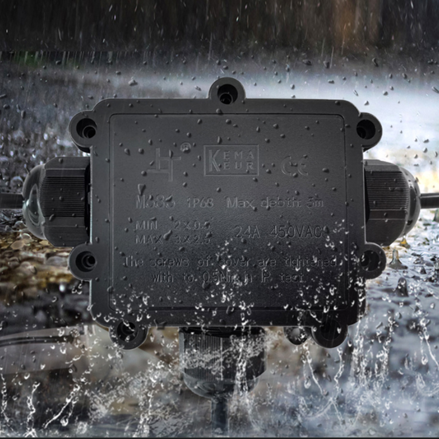 Благодаря водонепроницаемому дизайну и классу защиты до IP68, а также огнестойкости, пыленепроницаемости и ударопрочности, распределительная коробка обеспечит безопасность эксплуатации под солнцем или в дождливые/снежные дни.