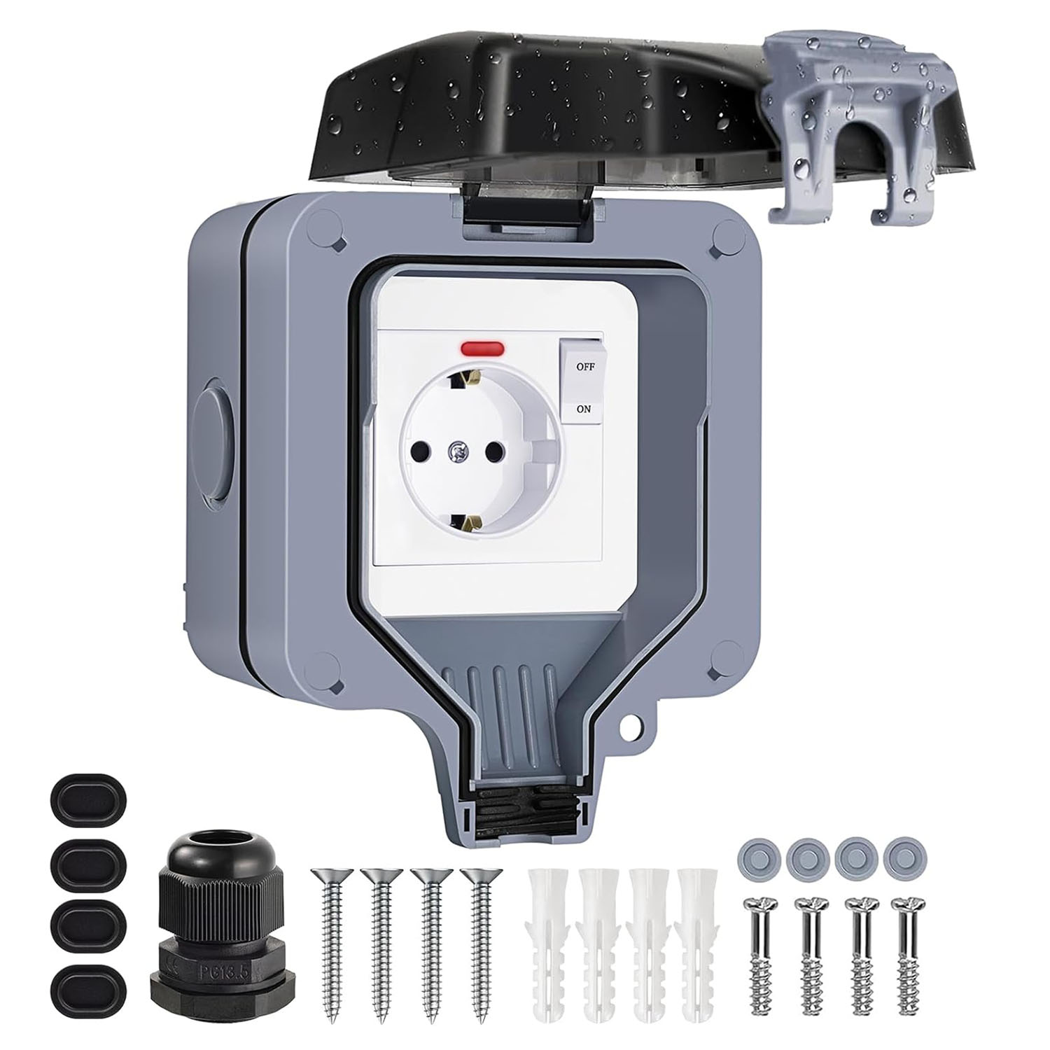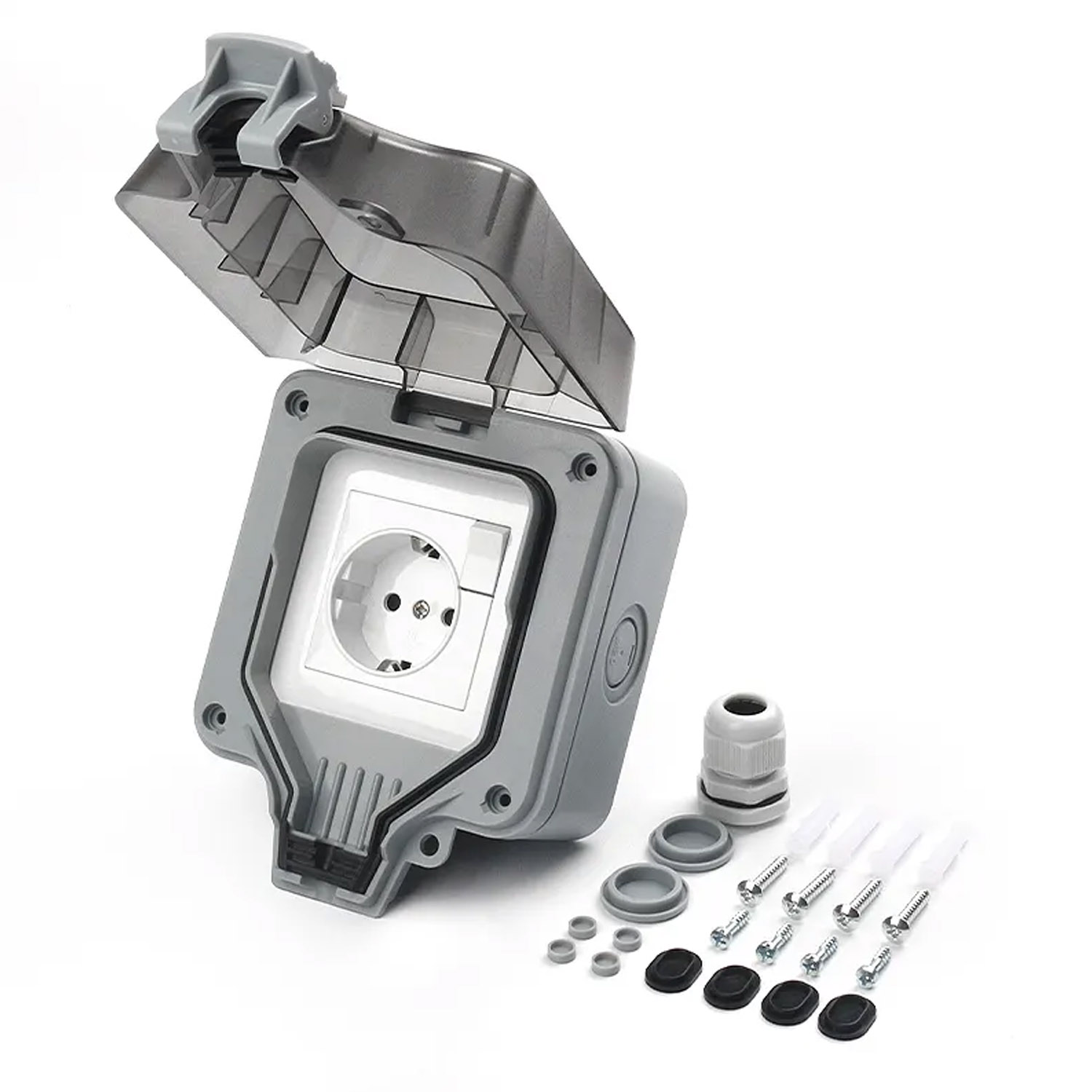 Розетка одинарная (с выключателем внутри) IP66 водонепроницаемая серая Premium