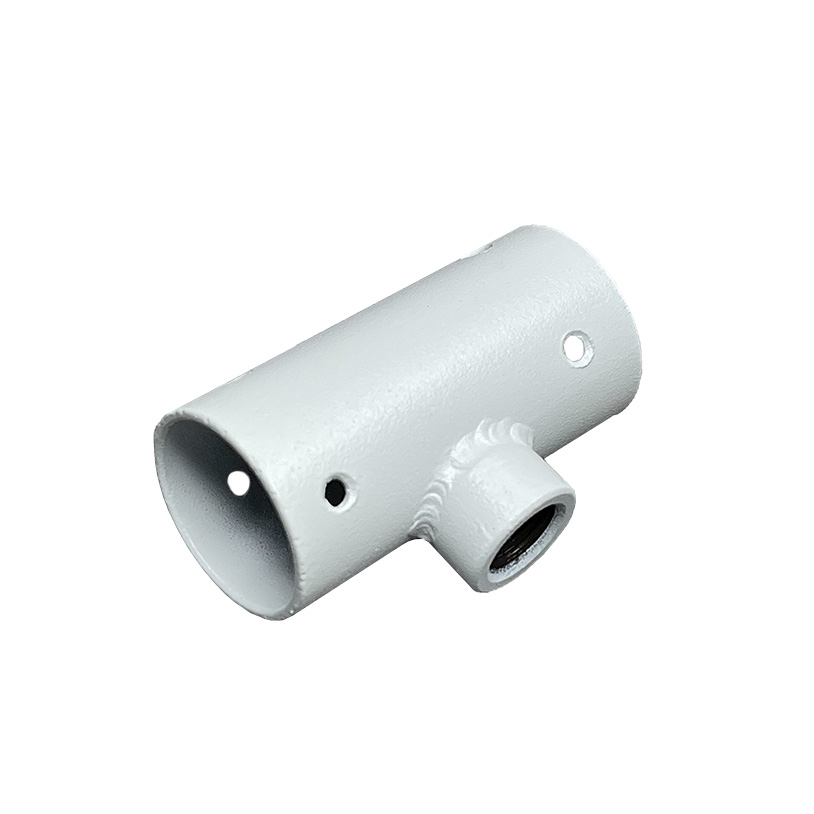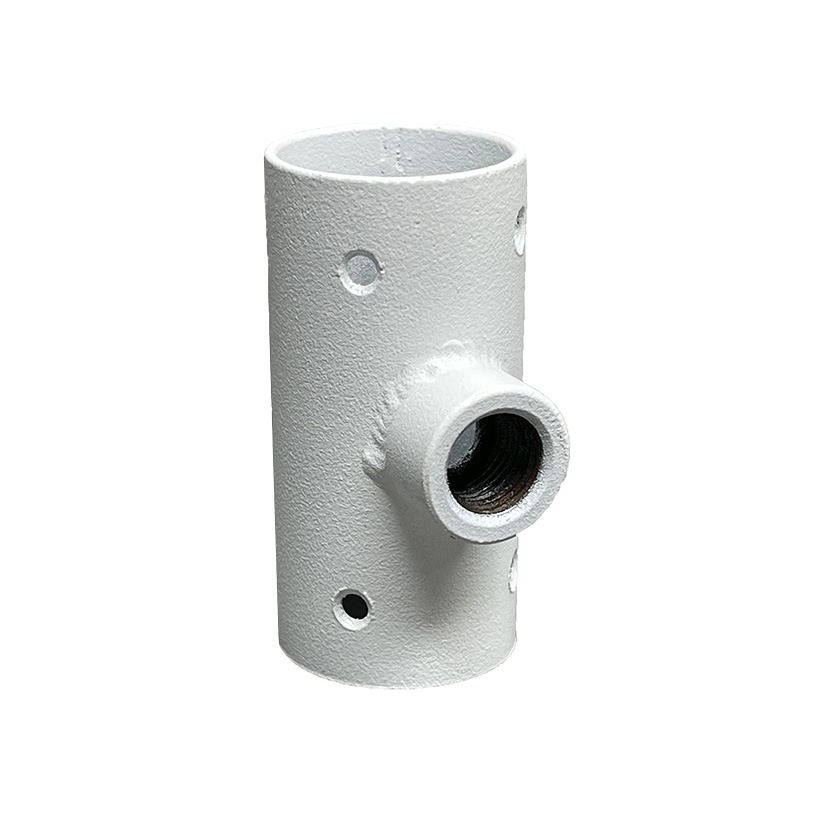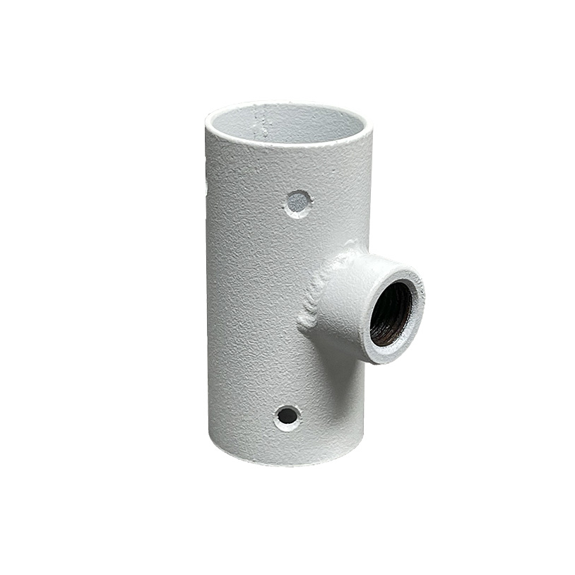 Накладка Т-образная представляет собой трубку цилиндрической формы из толстого металла с восемью отверстиями диаметром 3 мм для шурупов по стенкам цилиндра и одним по центру с приваренным резьбовым соединением под шпильку 10 мм в виде меньшего цилиндра диаметром 15 мм.