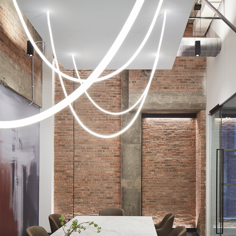 Растущая популярность этих люстр обусловлена тем, что свет проходя через стенки трубки из 100% чистого силикона мягко рассеивается и создает приятное комфортное для глаз свечение. Именно поэтому эту технологию так любят архитекторы и дизайнеры интерьеров. Вариаций использования бесконечное множество, все зависит от художественной идеи. Но вы точно можете быть уверены, что приятный свет LED неона будет завораживать и создавать особый уют вашего дома или ресторана.