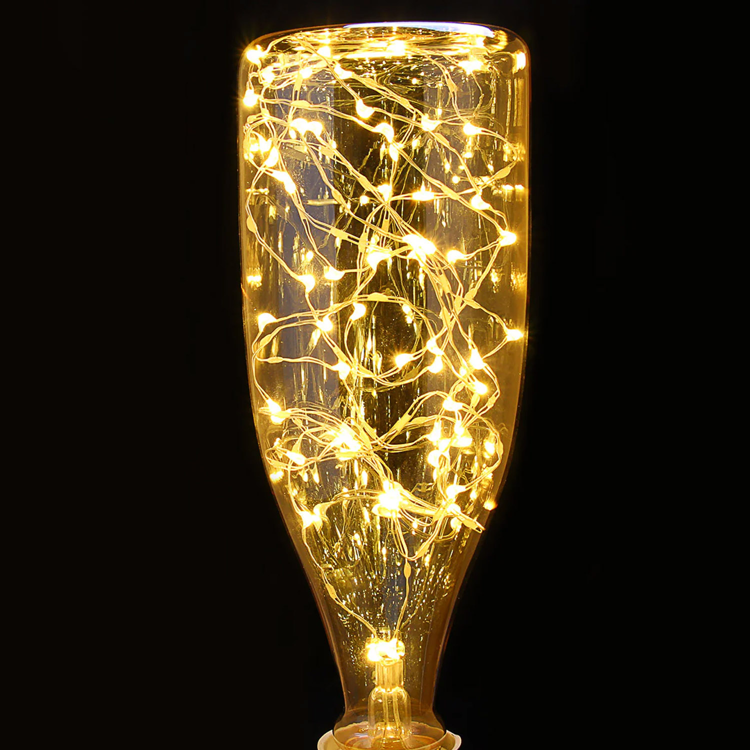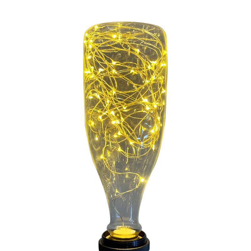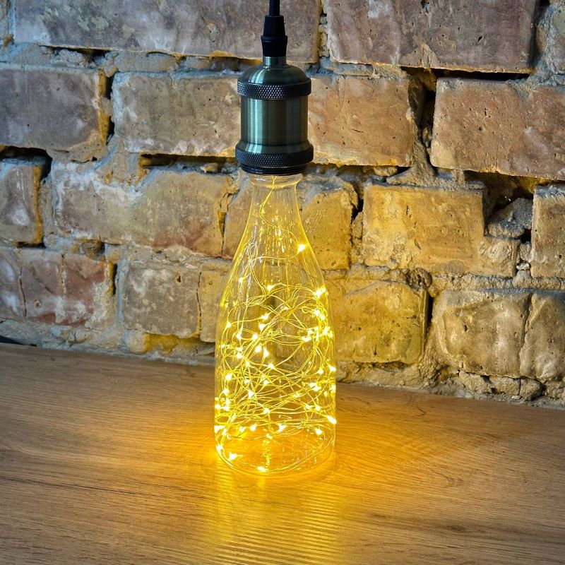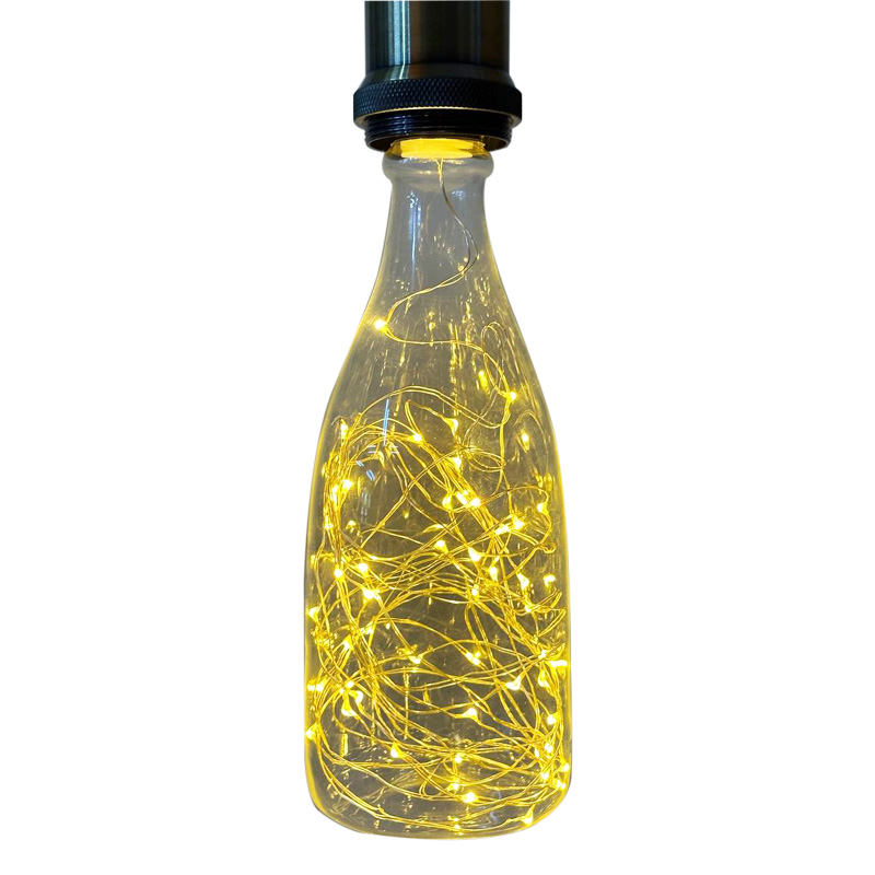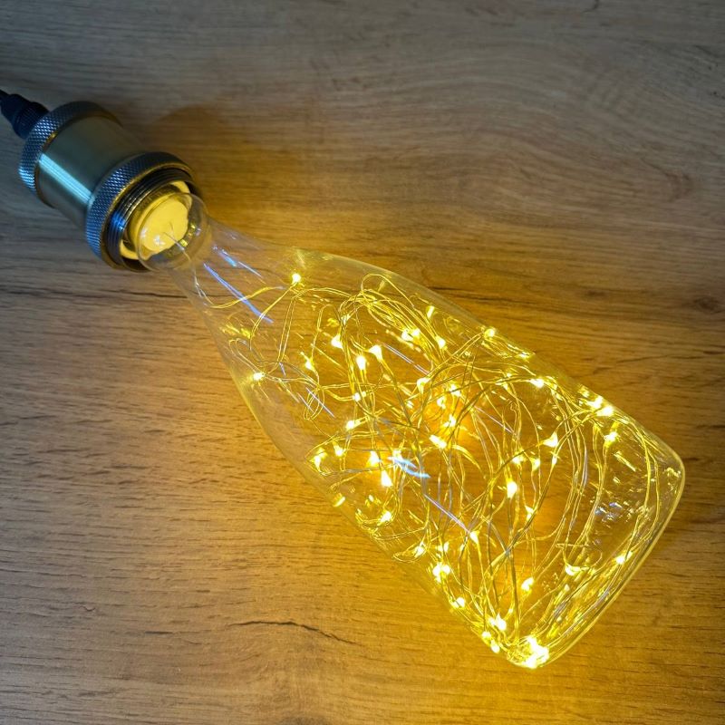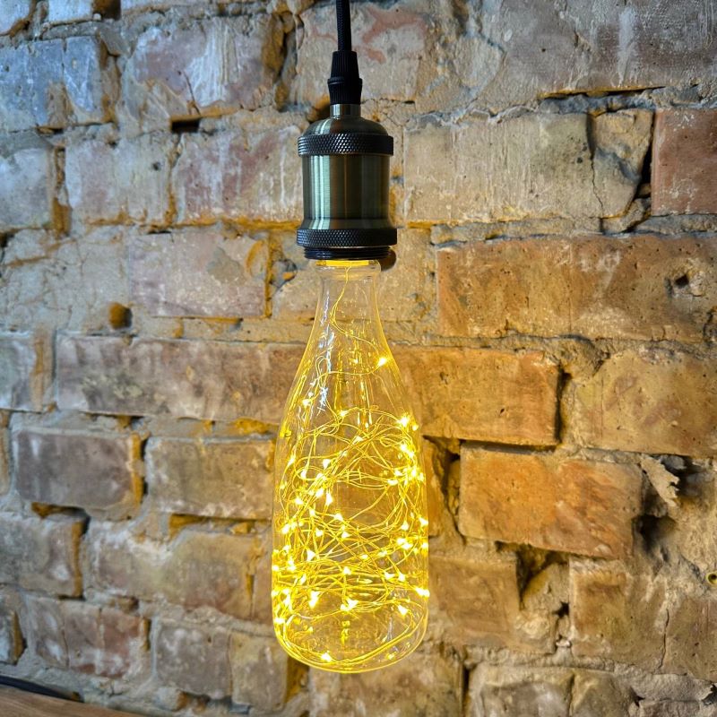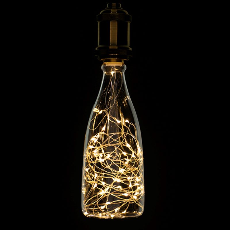 Декоративная LED лампа Edisons Е27 1,5W 2200К в форме бутылки со светодиодными нитями внутри. Такие лампы особенно подходят в качестве акцентного и декоративного освещения в ретро-светильниках. Очень красиво смотрятся в светильниках-подвесах, где хорошо видна лампа или вретро-гирляндах. В лампе множетсво маленьких светодиодов соединены друг с другом медным проводом и во включенном состоянии создается впечатление парящих светлячков.