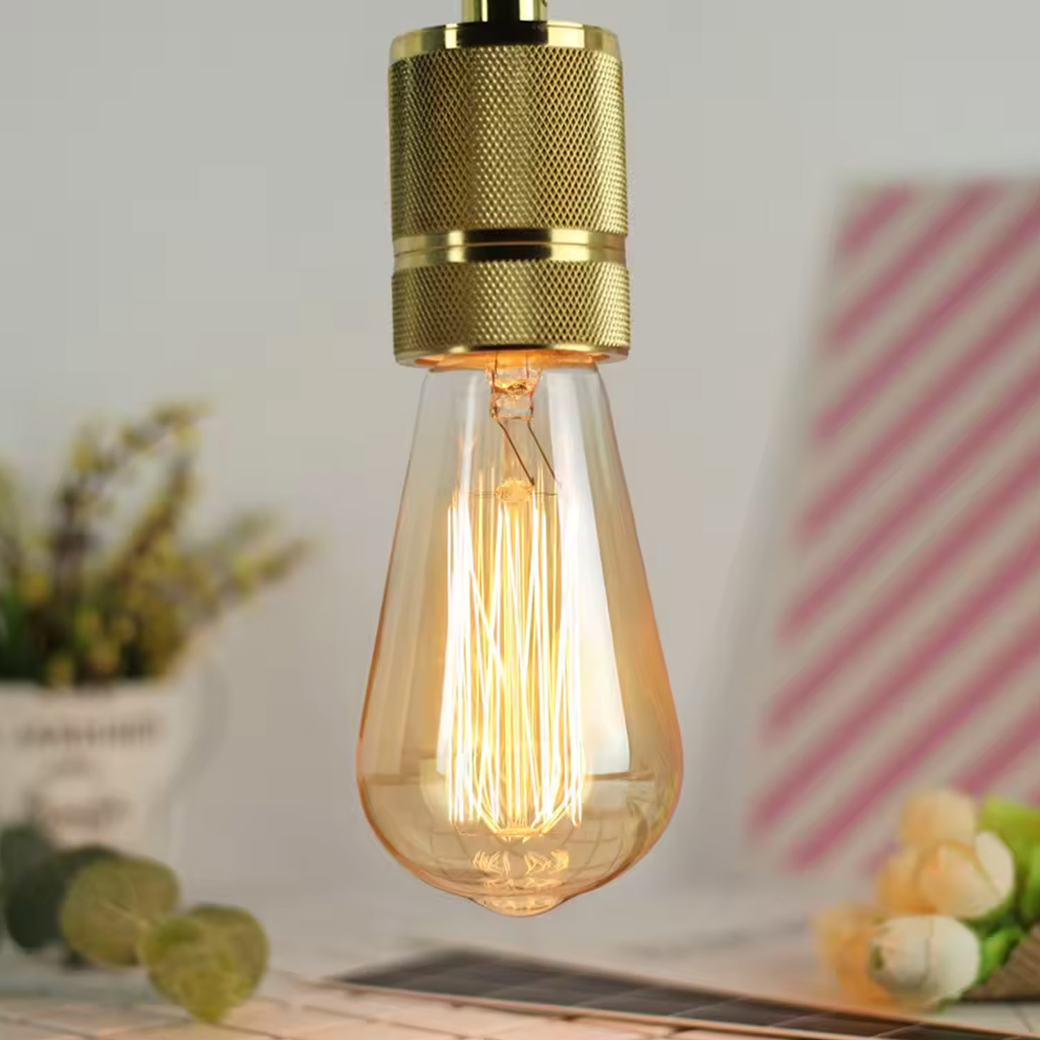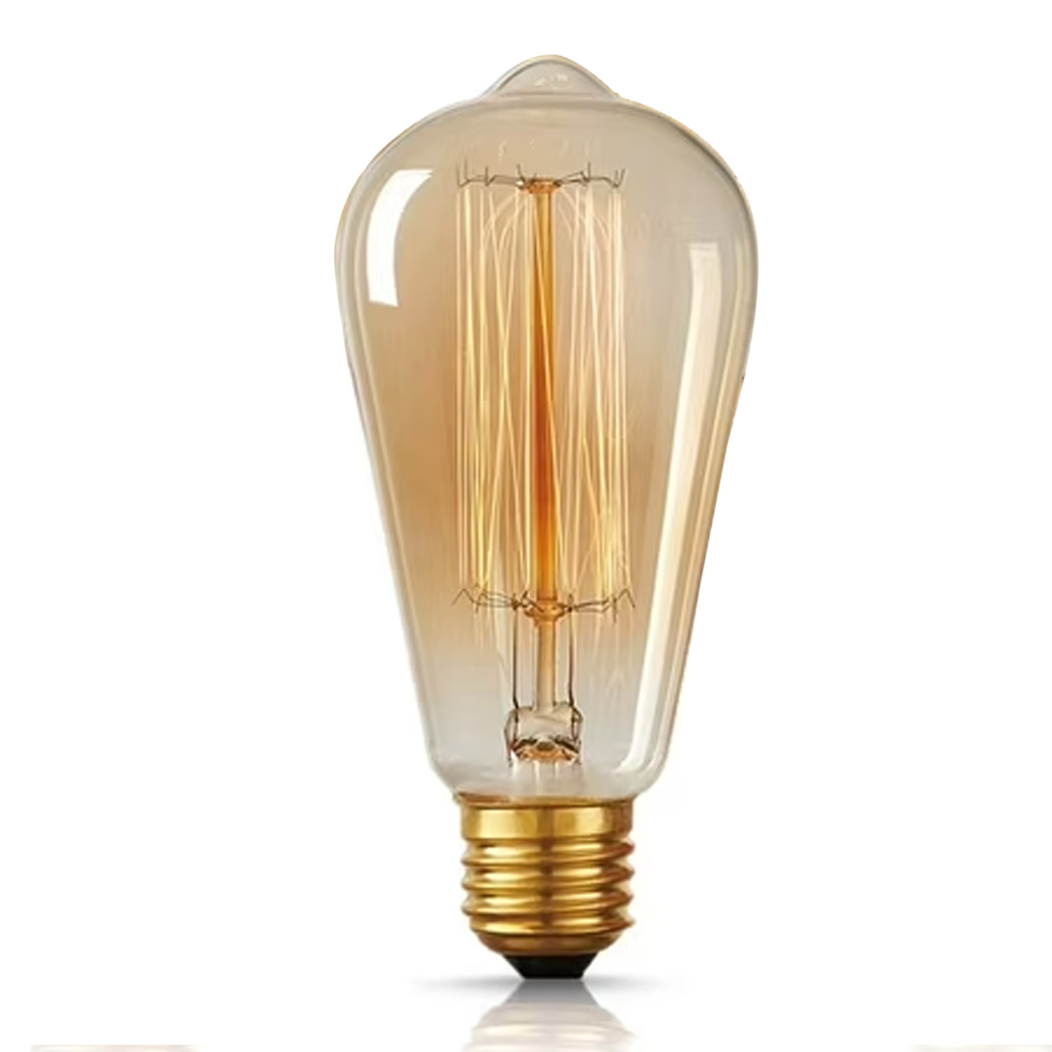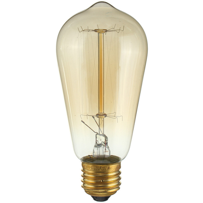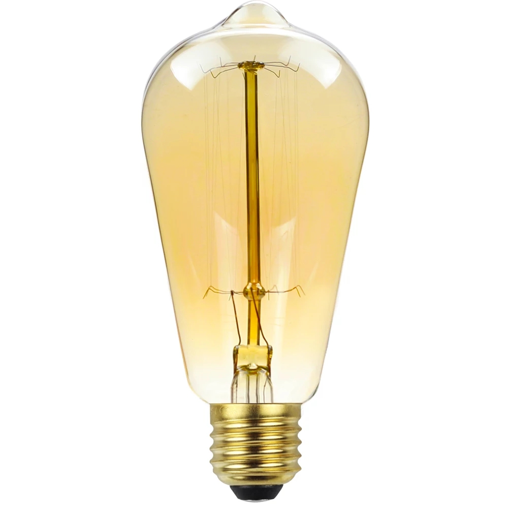 Лампа накаливания Эдисона ST64, также называемая ретро-лампа или винтажная лампа накаливания, представляет собой изделие из стекла с легким золотистым покрытием.