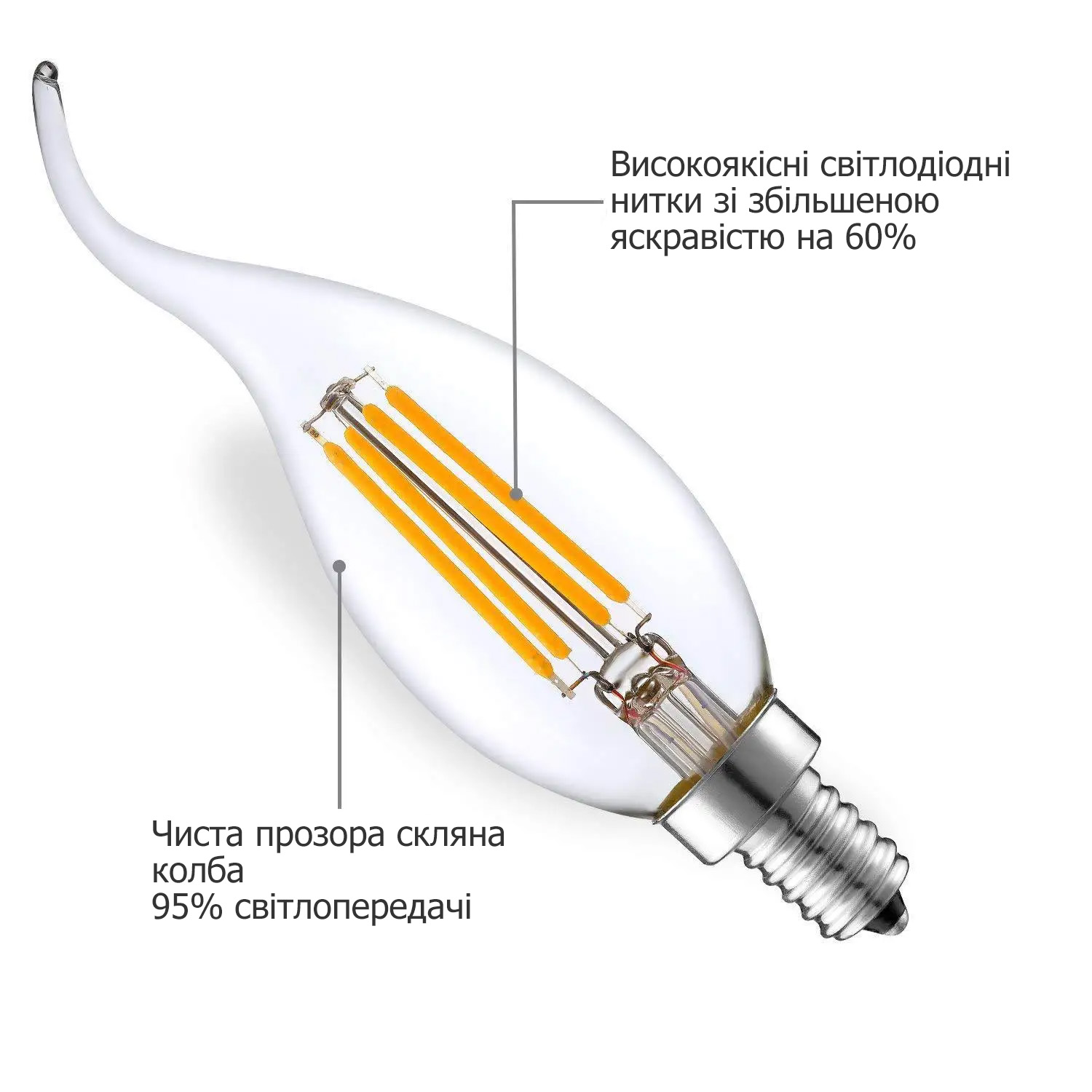 LED лампа Edisons С35Т E14 4W 2700К IC driver - качественная филаментная светодиодная лампа.