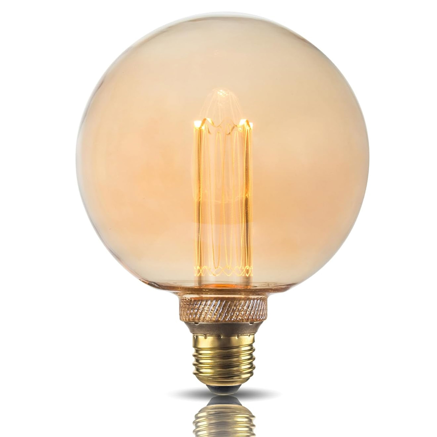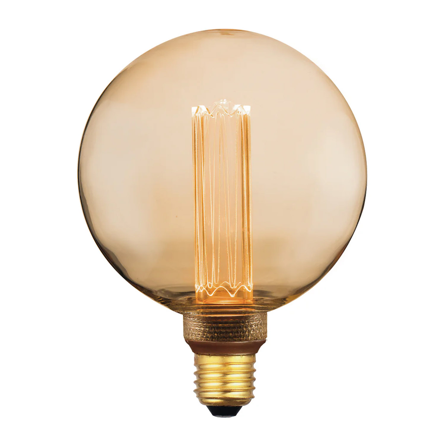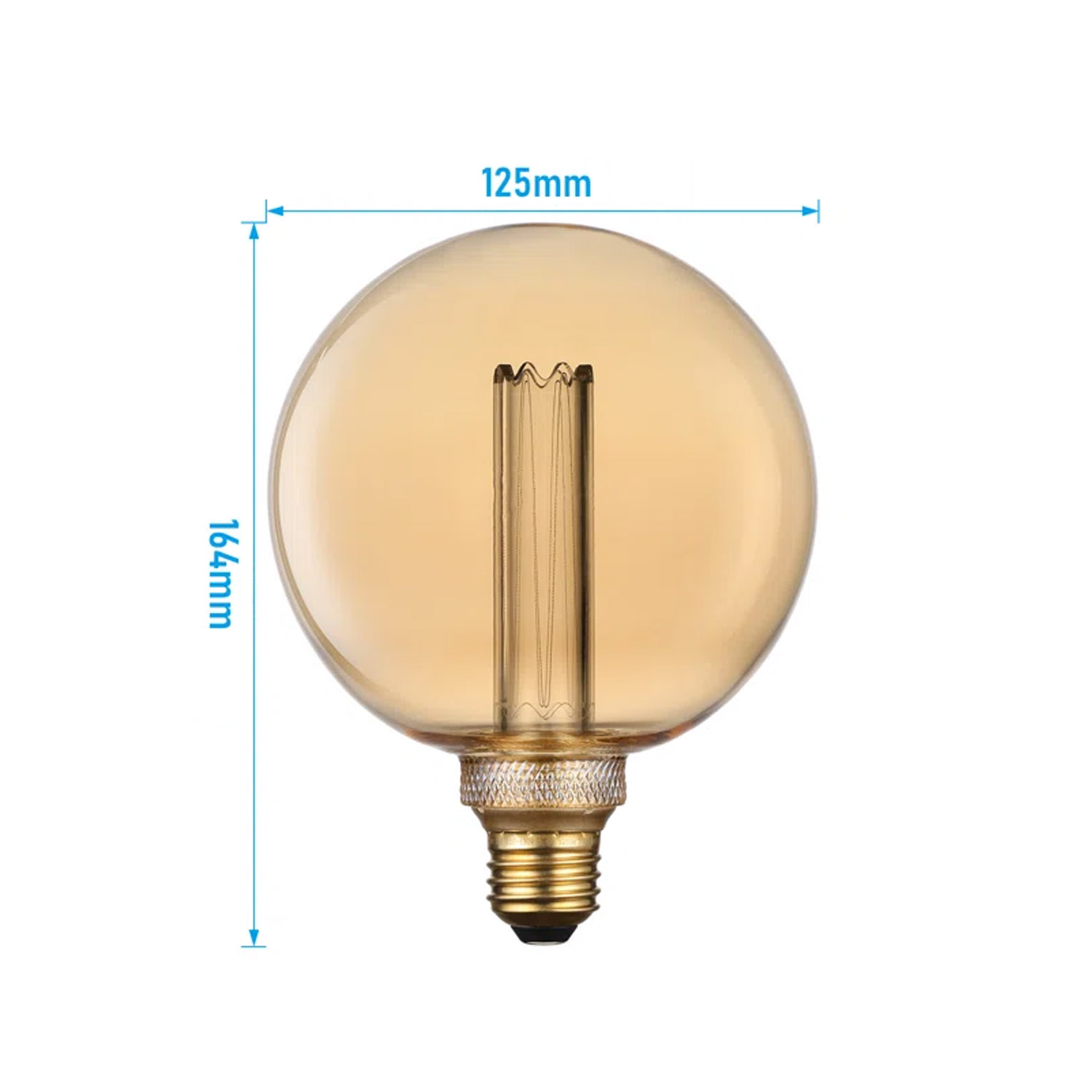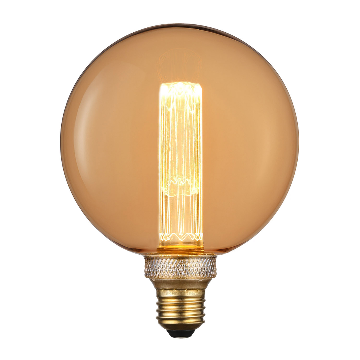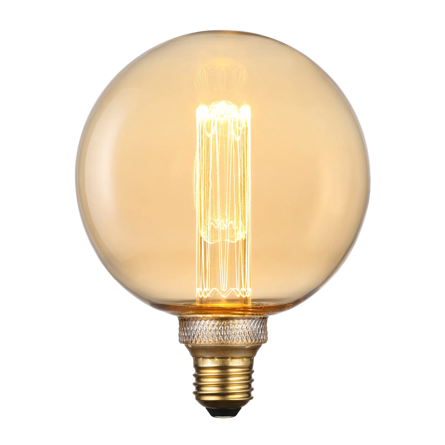 НОВИНКА премиального качества! Virtual Filament LED лампа Эдисона G125 RN E27 4W 1800К – винтажная лампа из стекла с янтарным покрытием и качественным IC драйвером без мерцания.