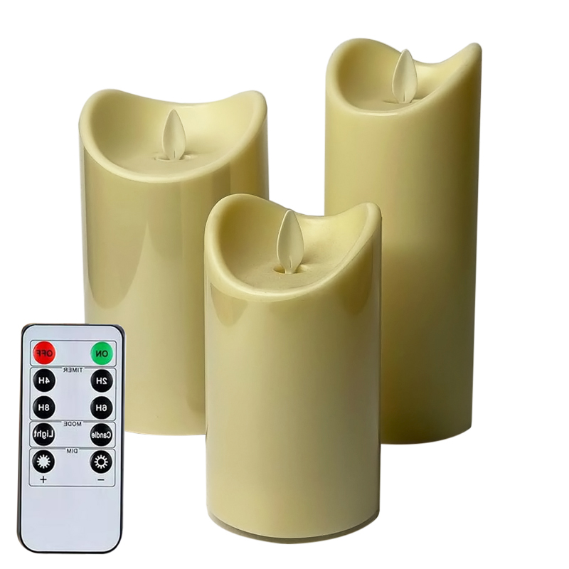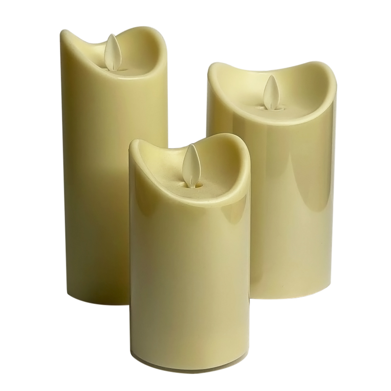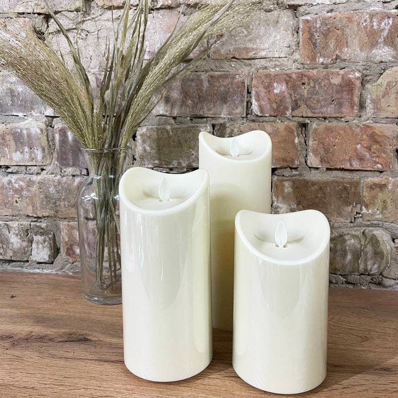 Набор 3 больших LED свечей с пультом ДУ и супер реалистичной имитацией пламени (уличные, влагозащищенные) на батарейках Premium