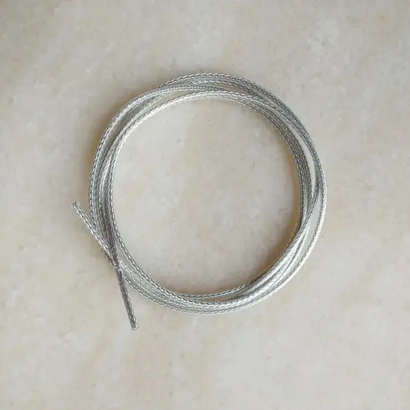 Качественный провод-тросик в двойной изоляции сечением 1х0,5. Имеет вид плетёного стального троса. Визуально и по толщине мало чем отличается от тросиков светильников с подвесными элементами. Прекрасно смотрится на подвесных светильниках и люстрах.
